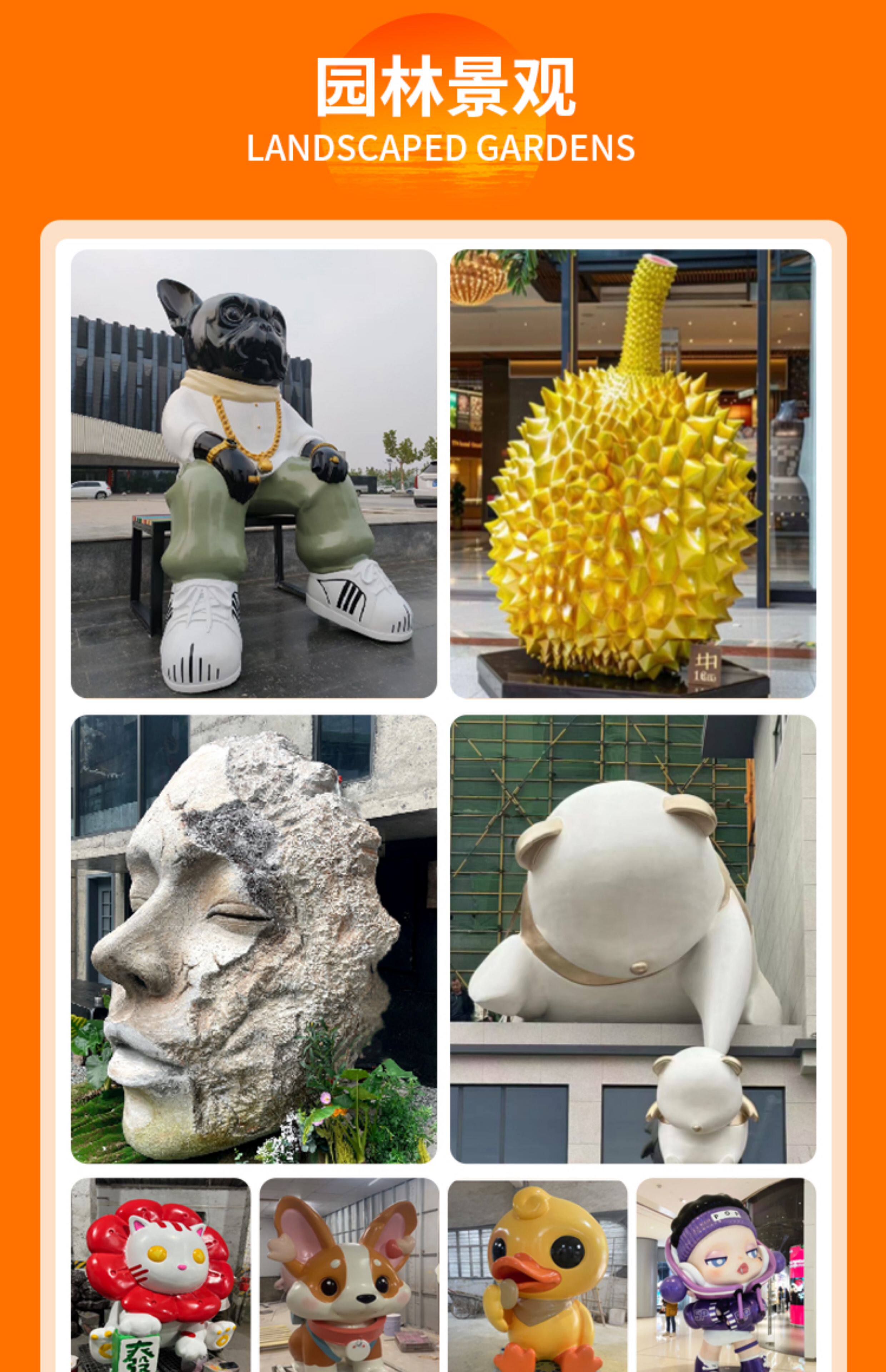 유리 섬유 강화 플라스틱 조각 IP 이미지 인터넷 유명 만화 캐릭터 동물 인형 야외 큰 풍경 아름다운 첸 스케치 장식품
