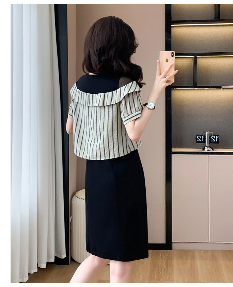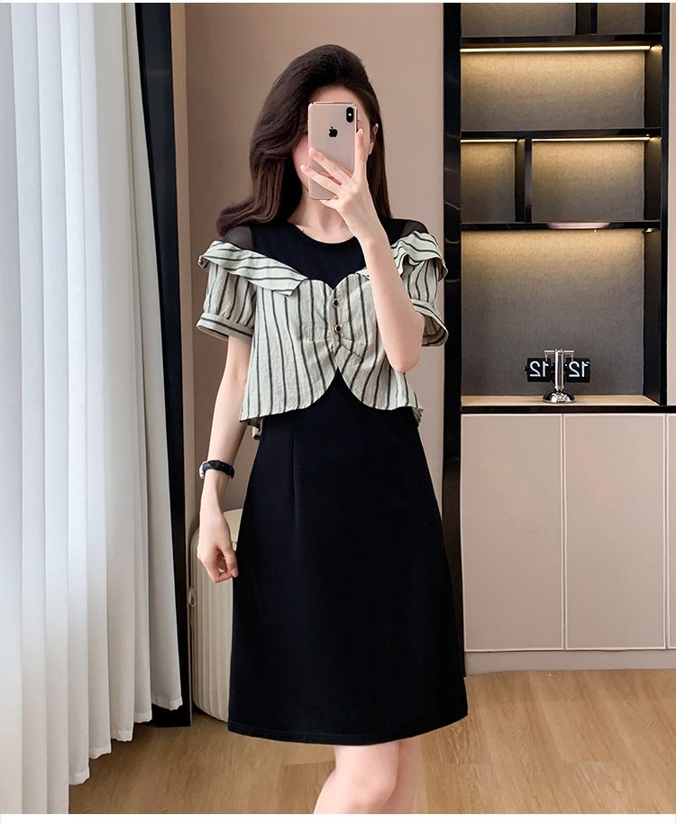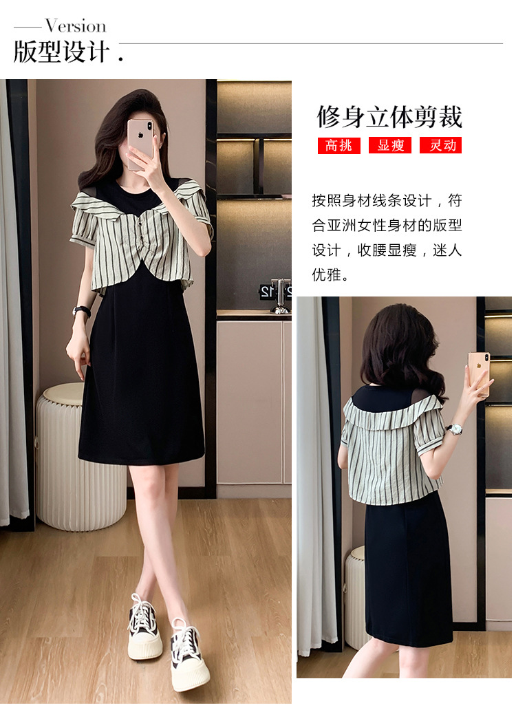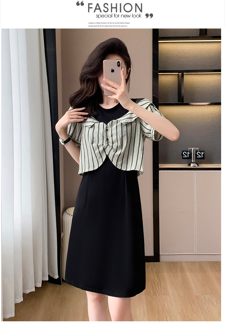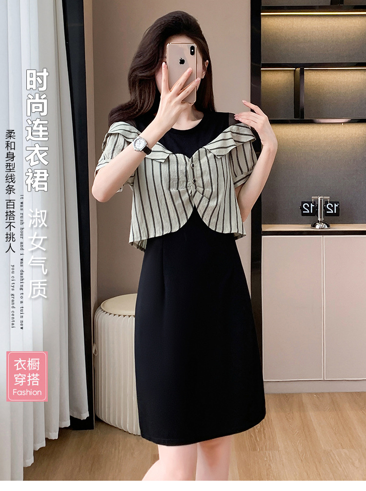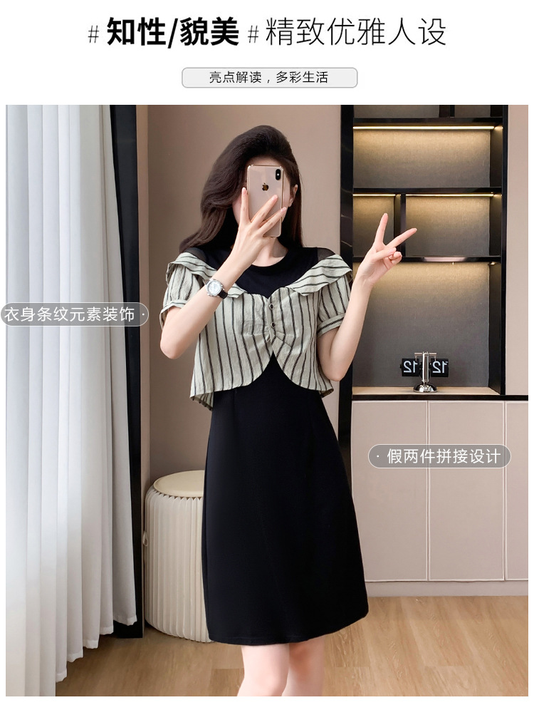 플러스 사이즈 여성 원피스 2025 여름 새로운 바느질 가짜 투피스 약간의 뚱뚱한 패션 슬림 원피스스토어 가기