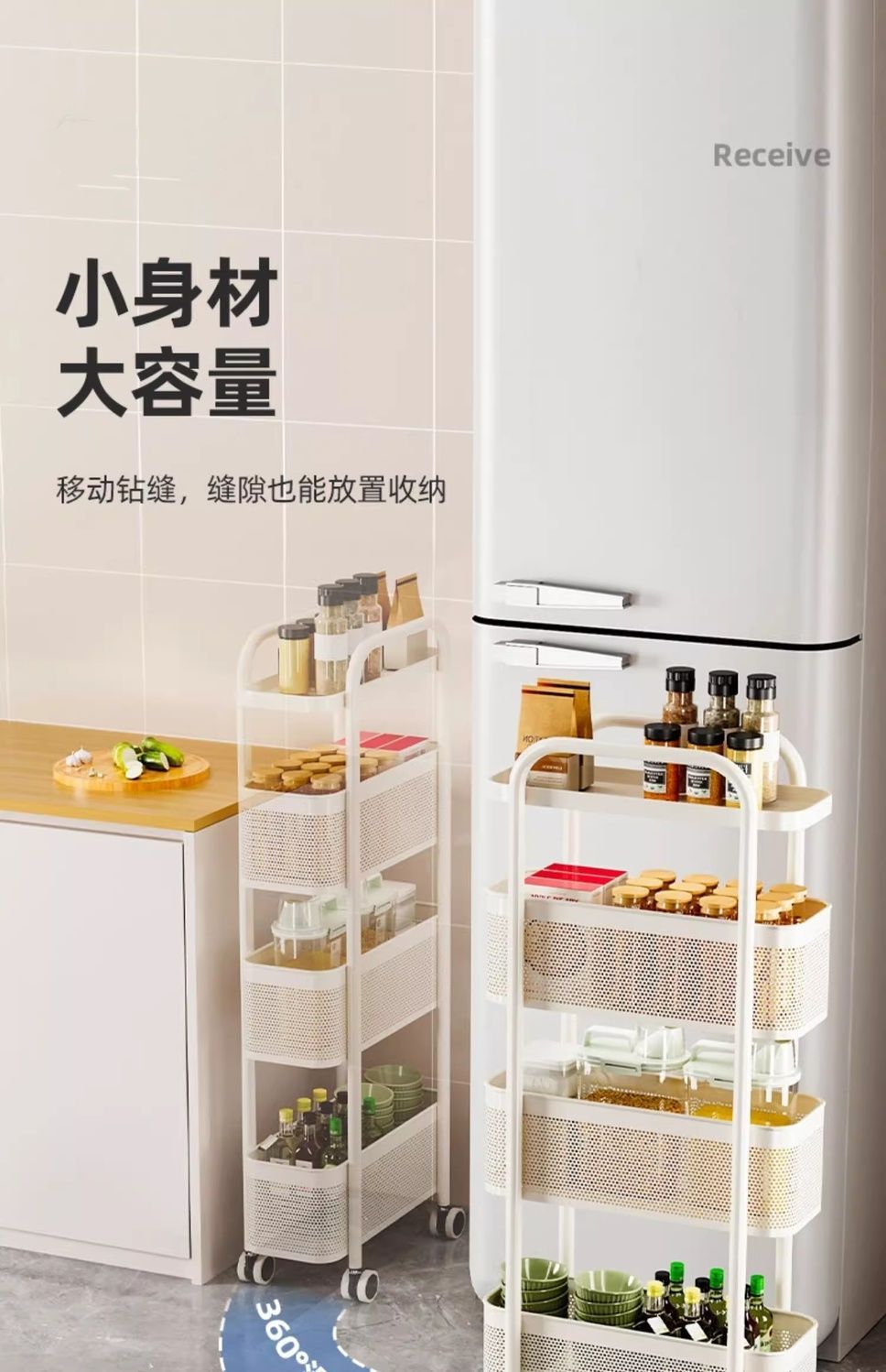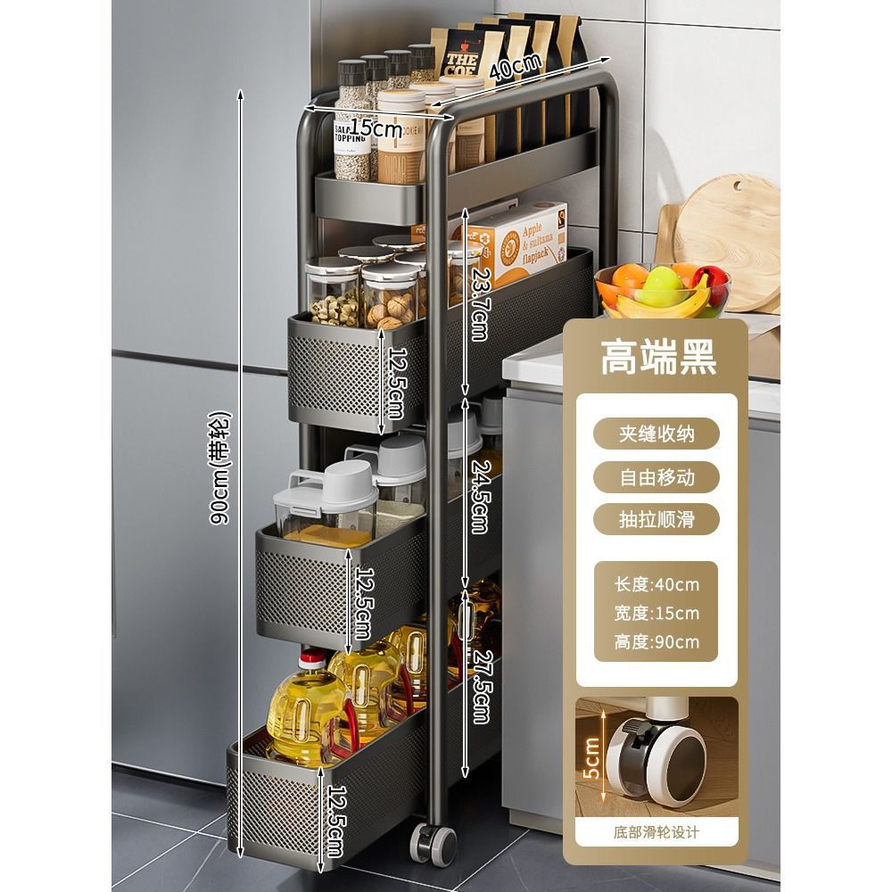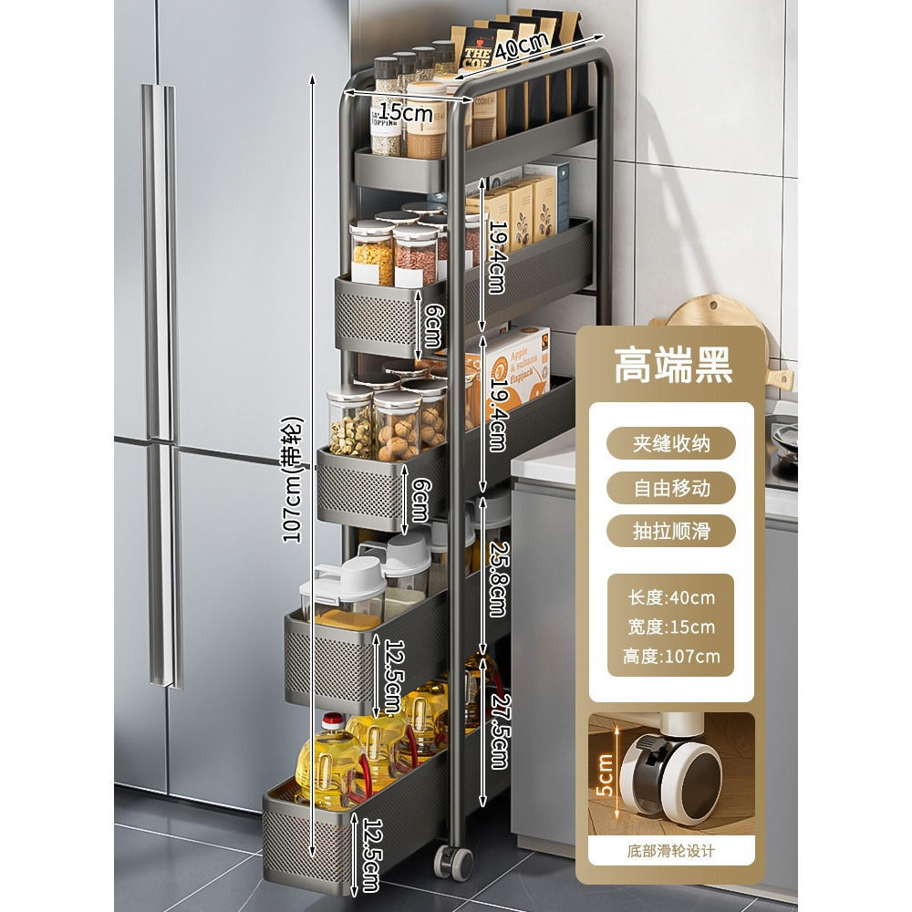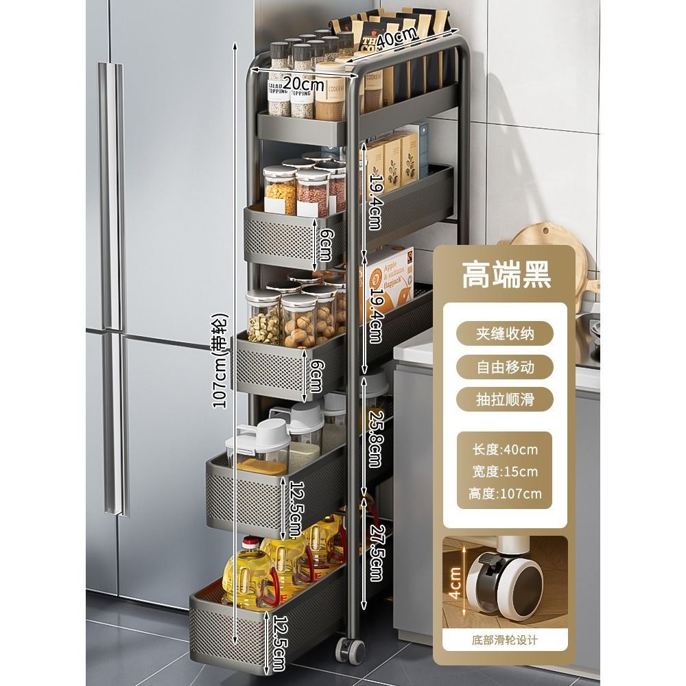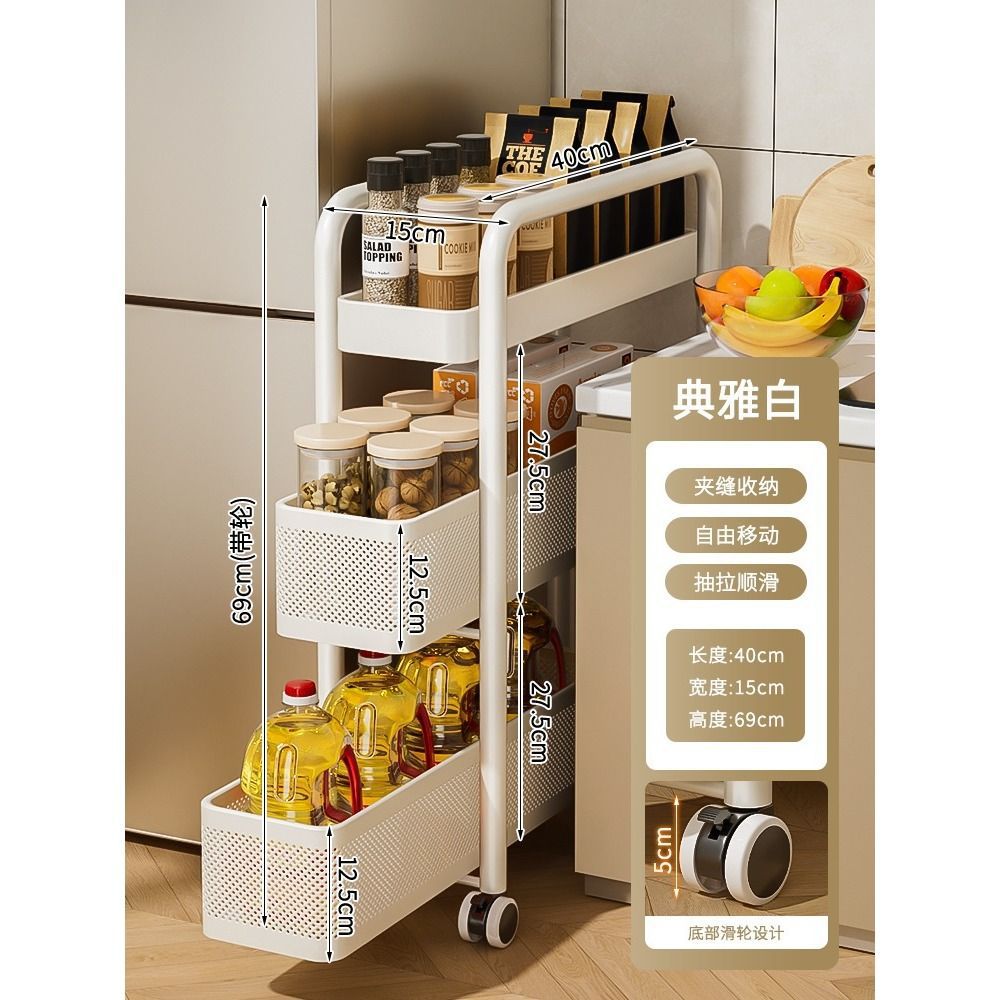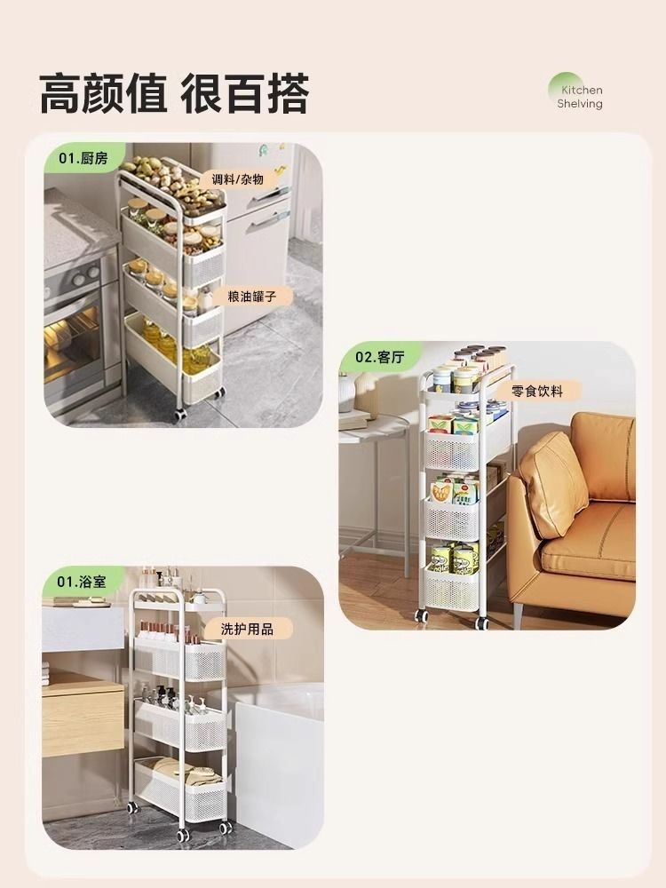 갭 스토리지 랙 주방 다기능 냉장고 갭 저장 캐비닛 야채 바구니 화장실 플라스틱 모바일 카트스토어 가기