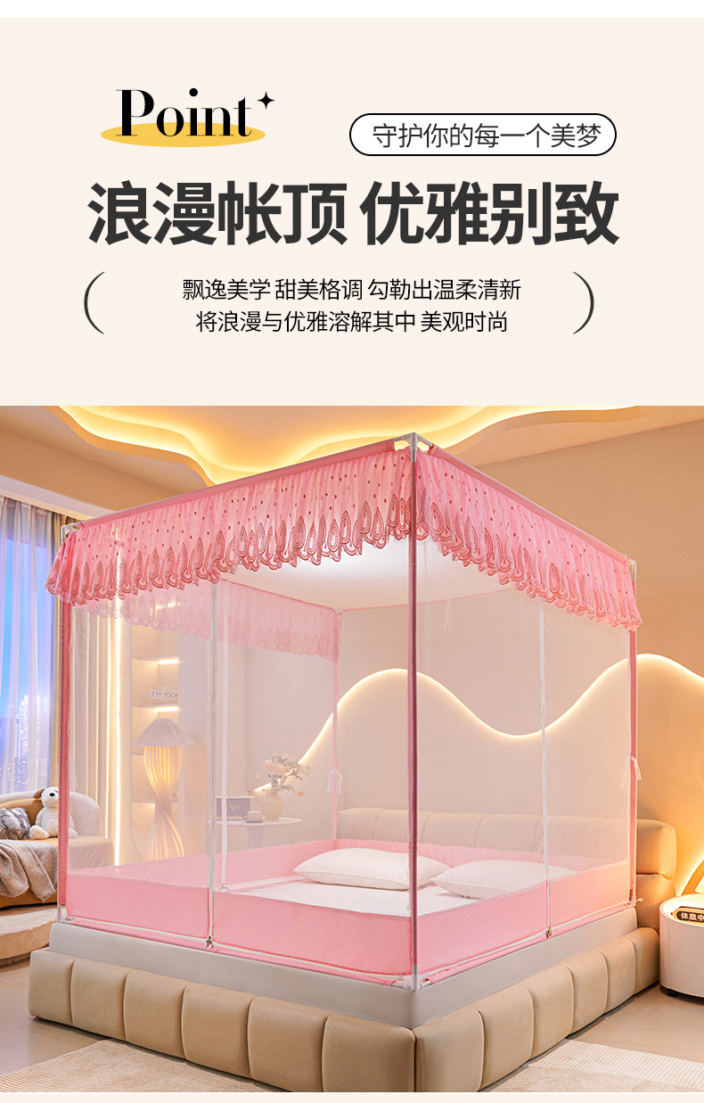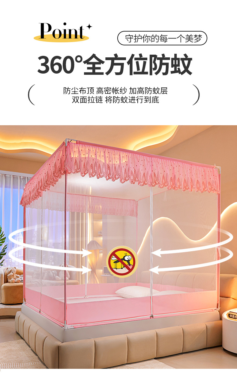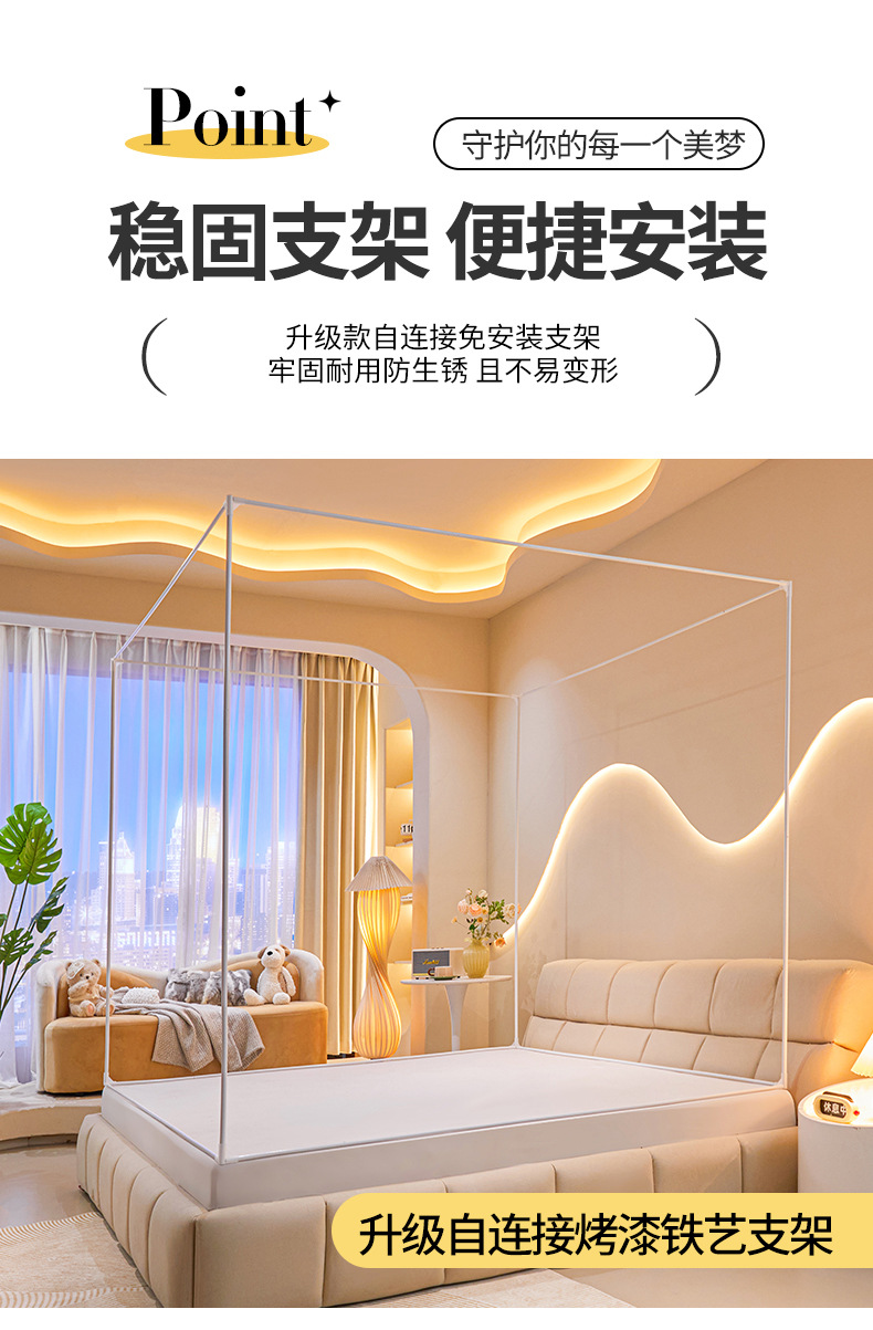 낙상방지, 완전밀폐형, 바닥이 완전히 닫혀있는, 3개의 출입구가 있는, 침대용 지퍼형 암호화 모기장, 1.5m 스탠드, 2.18m 침대 커튼스토어 가기