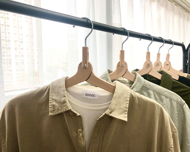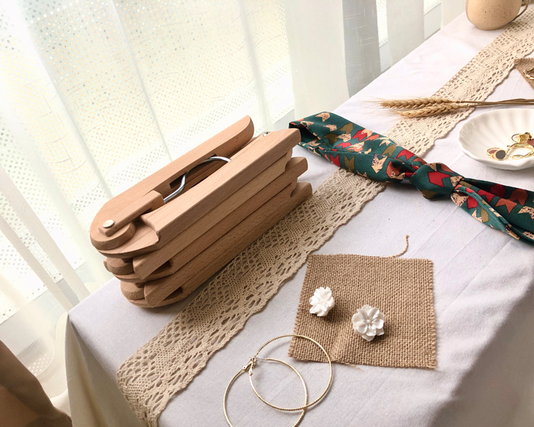 가정용 의류 매장용 접이식 단단한 나무 옷걸이, 여행용 칼라 확장 없음, 친환경 목재, 미끄럼 방지, 편안함, 흔적 없음, 순수 수제스토어 가기