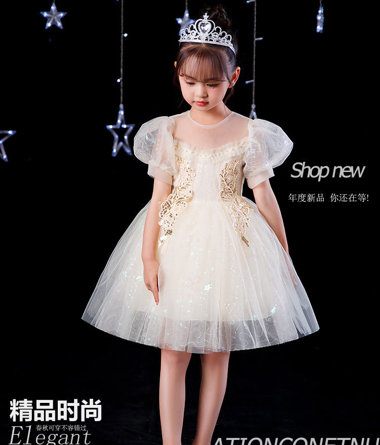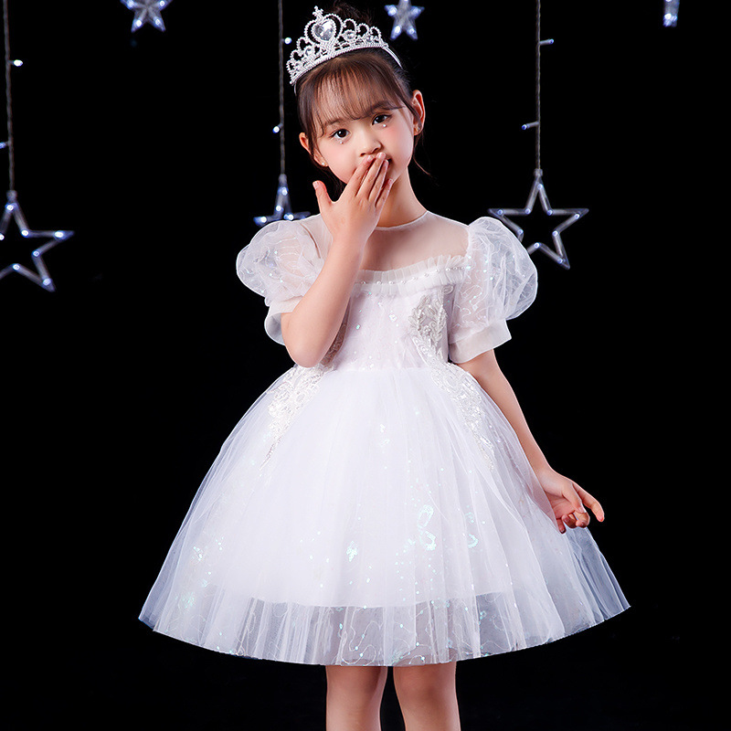 소녀 새 공주 원피스 스타일키 여름 어린이 푹신한 베일 호스트 웨딩 원피스 하이 엔드 이브닝 원피스 퍼포먼스 의류스토어 가기