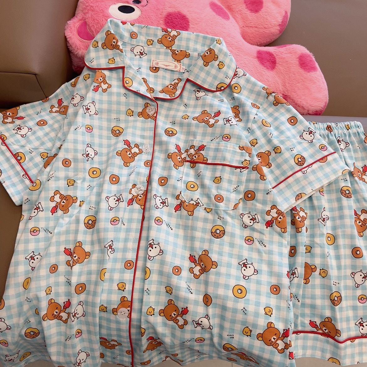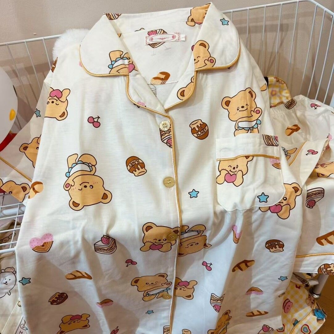 버터베어 잠옷 여성용 여름 반팔 인스 만화 귀여운 학생 홈웨어 세트 외출복 귀여운 스타일스토어 가기