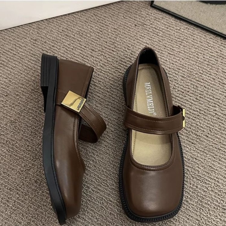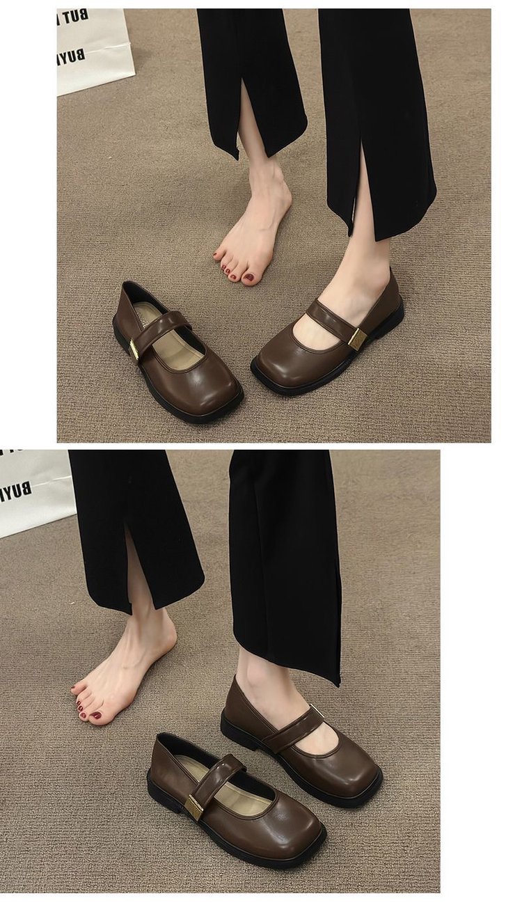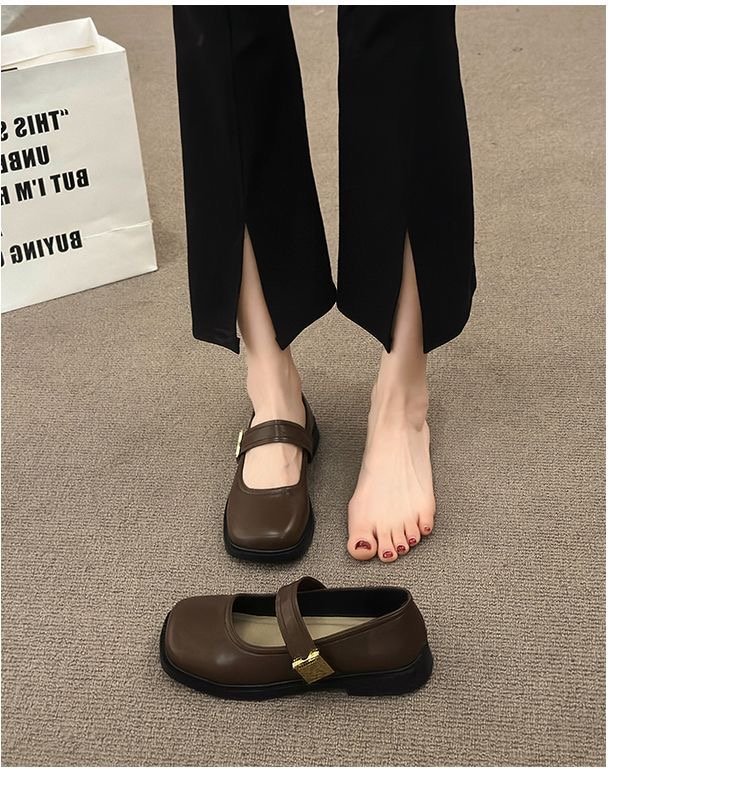 메리 제인 신발 여성 2025 년 봄과 여름 새로운 영국 스타일 작은 가죽 신발 플랫 콩 신발 틈새 프랑스 싱글 신발스토어 가기