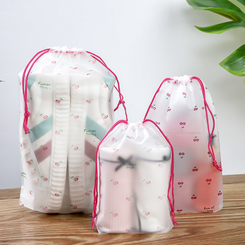 소스 공장 pe 플라스틱 포장 가방 젖빛 만화 drawstring 가방 의류 신발 여행 저장 가방 도매스토어 가기