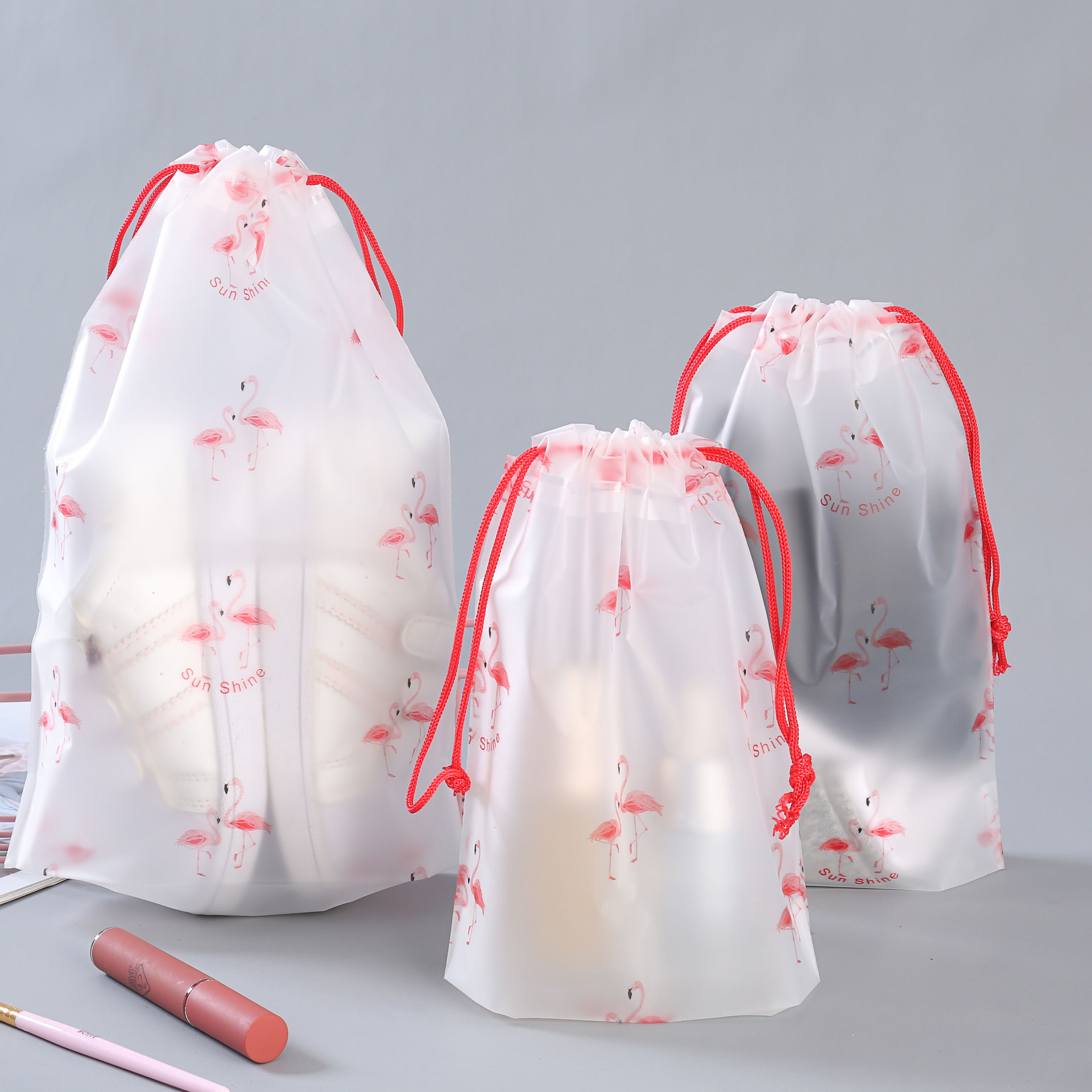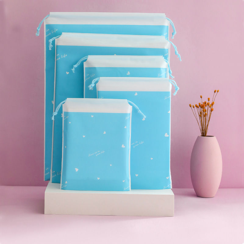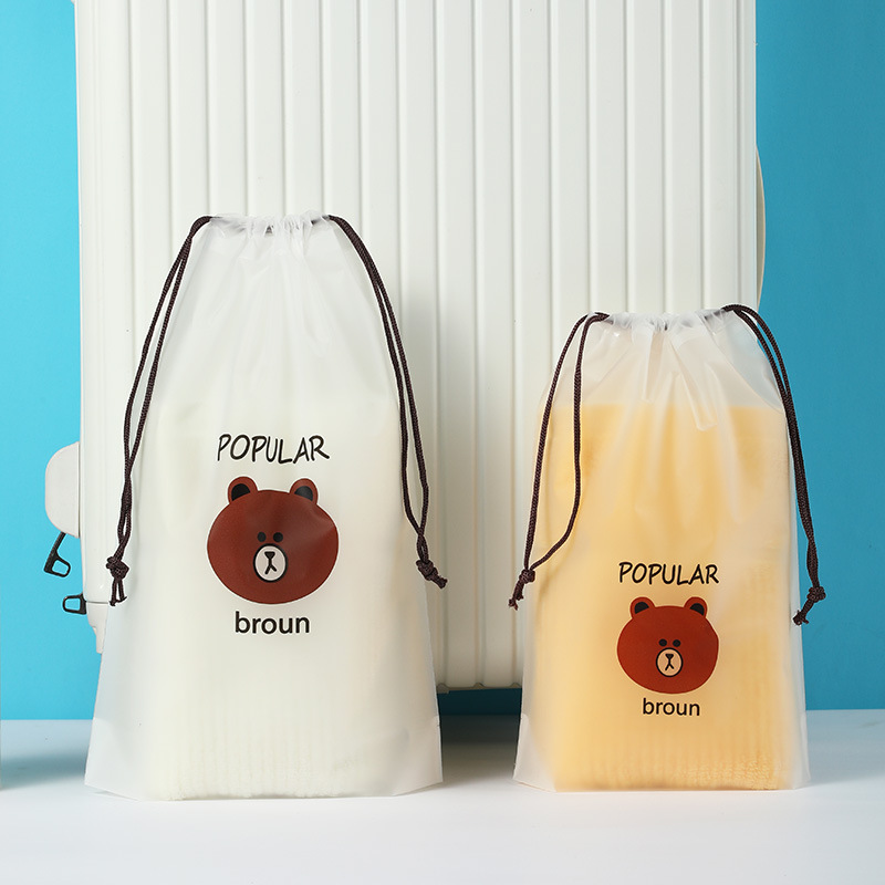 소스 공장 pe 플라스틱 포장 가방 젖빛 만화 drawstring 가방 의류 신발 여행 저장 가방 도매