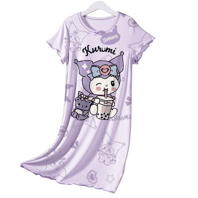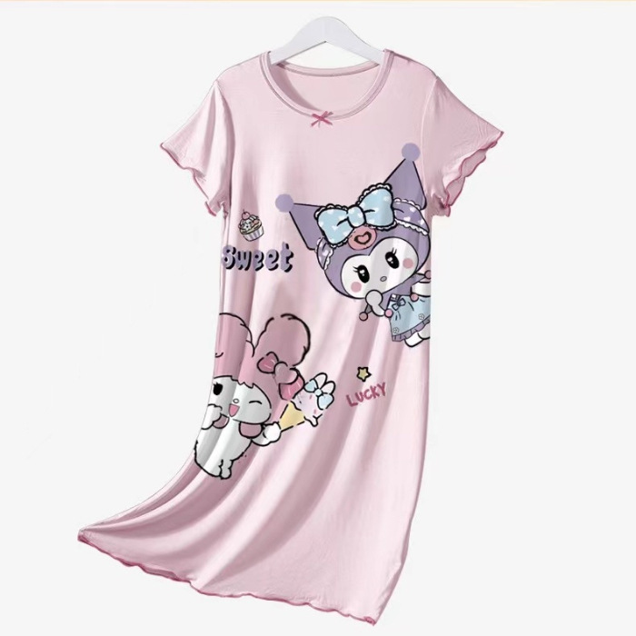아이스 실크 여름 새로운 어린이 잠옷 소녀 잠옷 짧은 소매 여름 얇은 소녀의 만화 귀여운 집 옷 유행스토어 가기