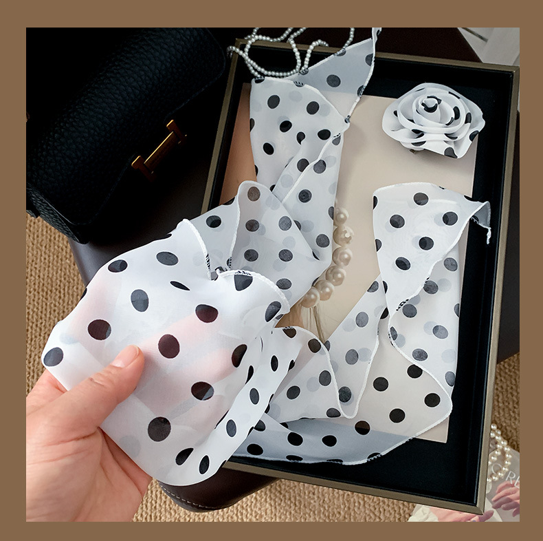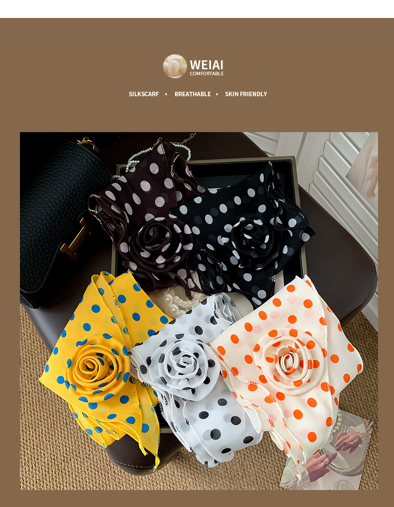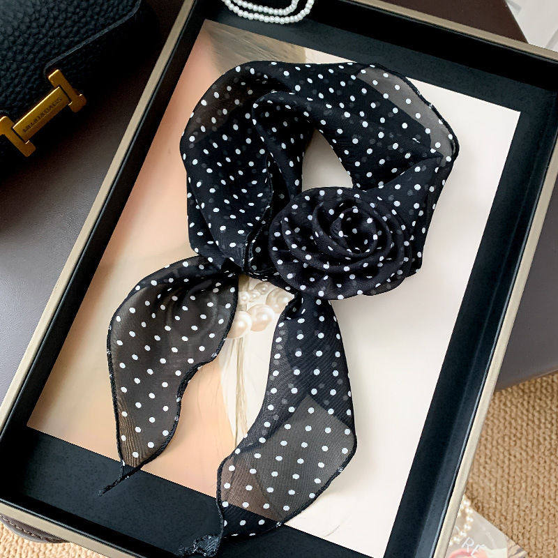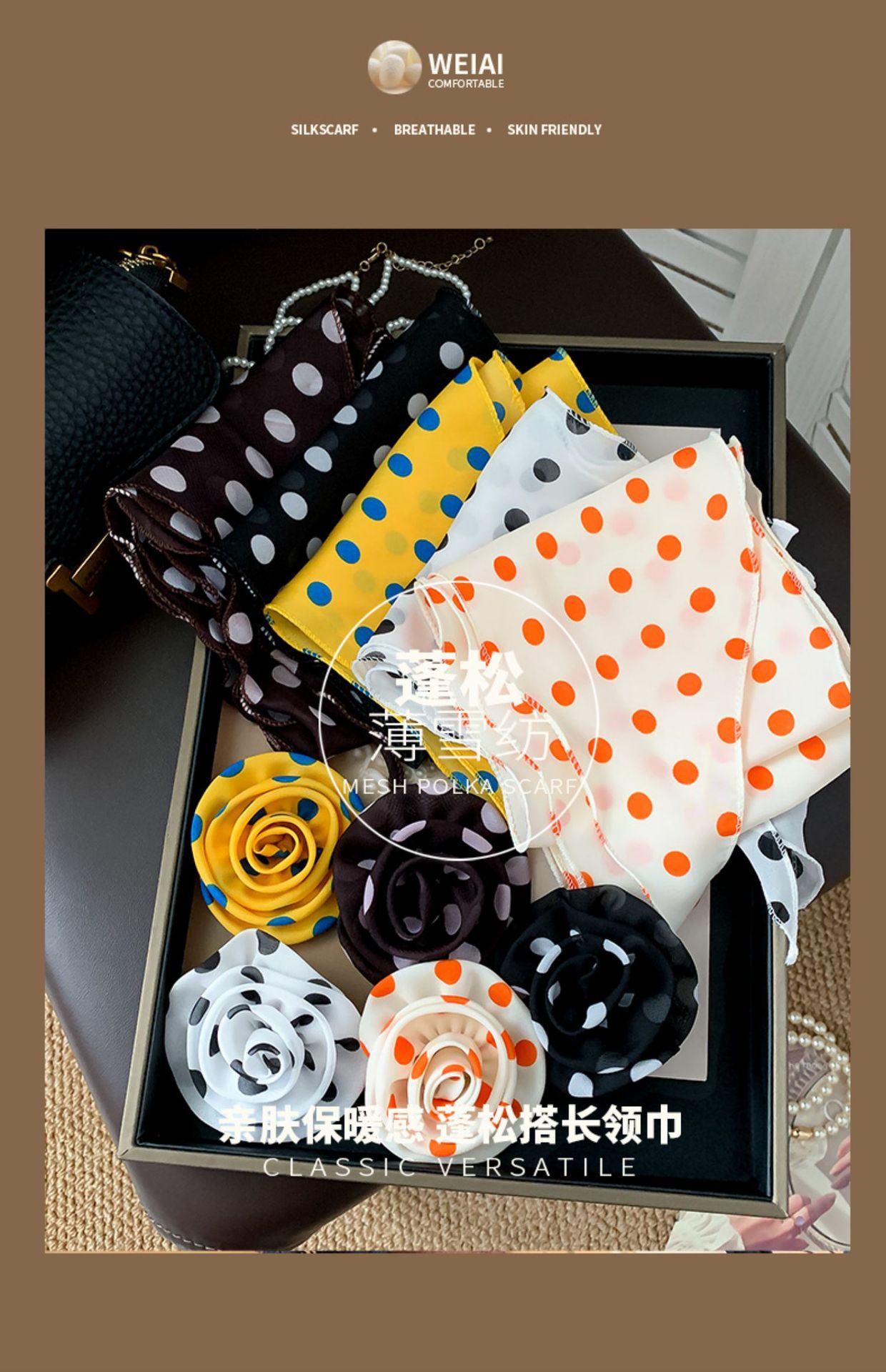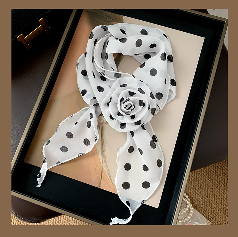 긴 설문 조사 도트 스테레오 로즈 스카프 여성의 봄과 여름 얇은 분위기 틈새 스카프 좁은 스카프 패션스토어 가기