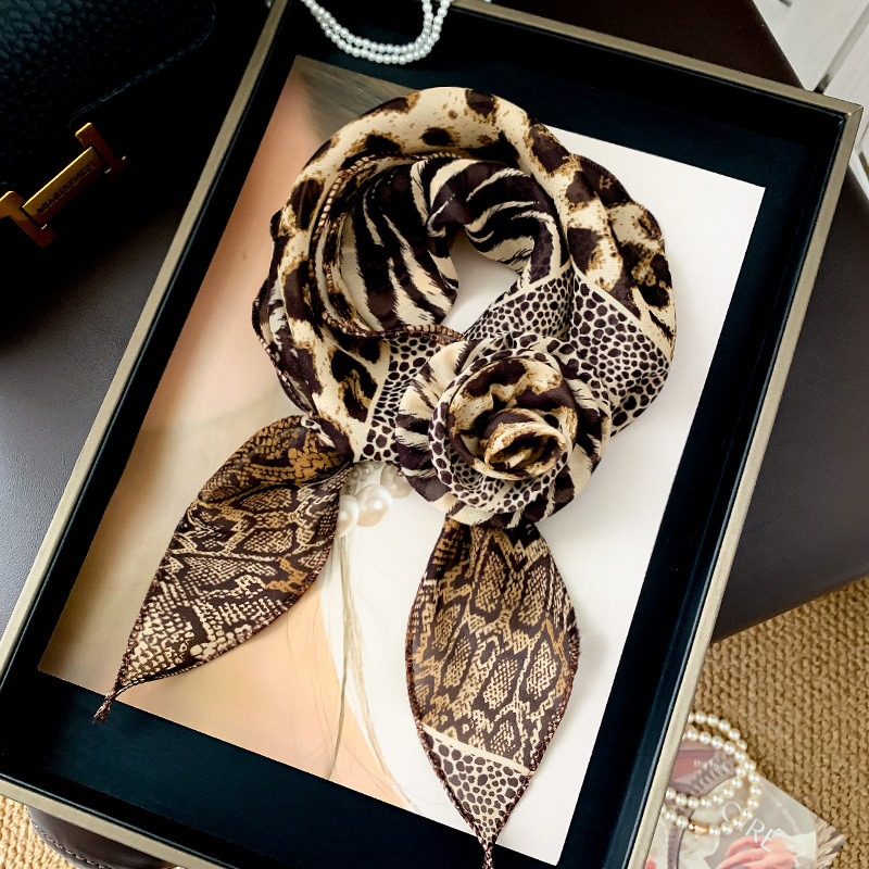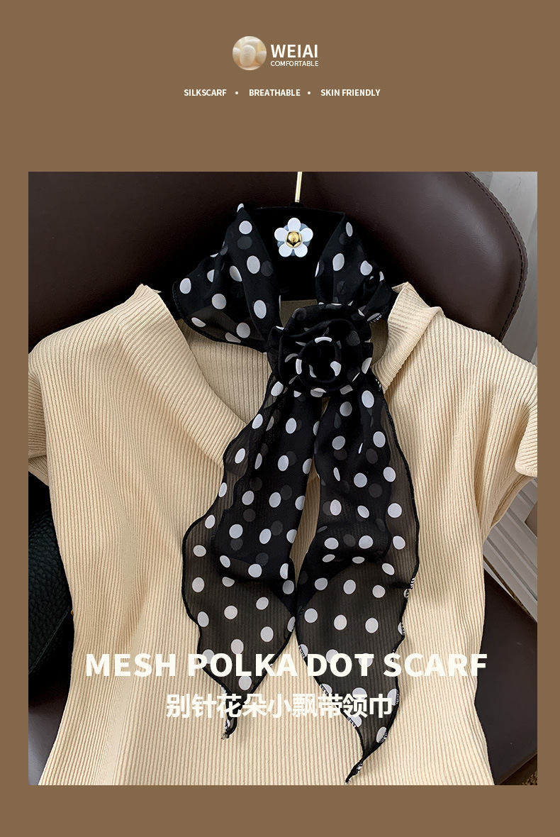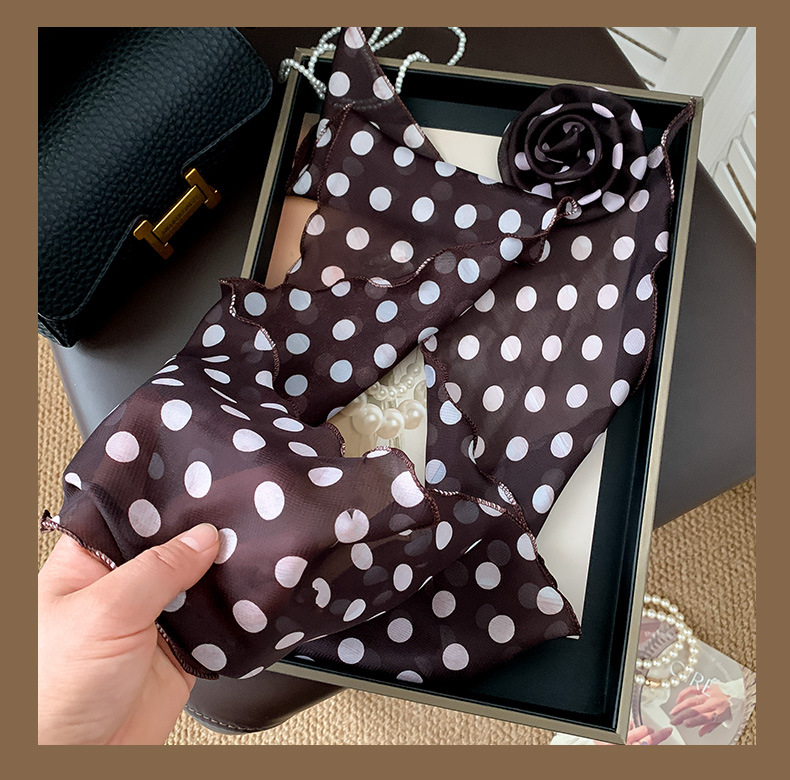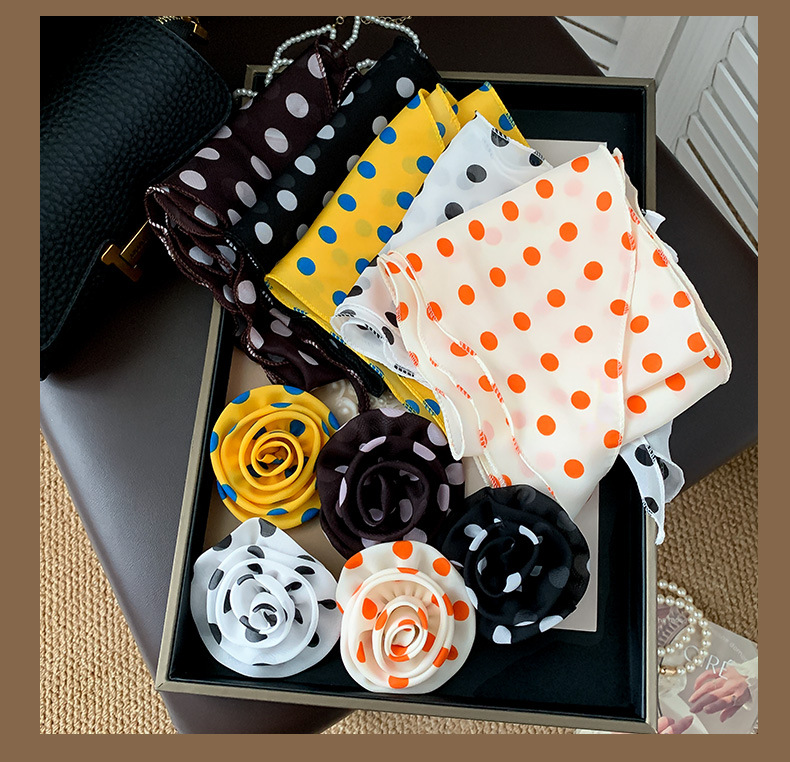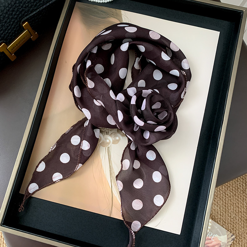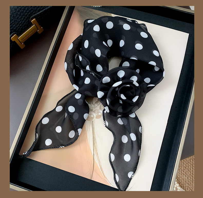 긴 설문 조사 도트 스테레오 로즈 스카프 여성의 봄과 여름 얇은 분위기 틈새 스카프 좁은 스카프 패션스토어 가기