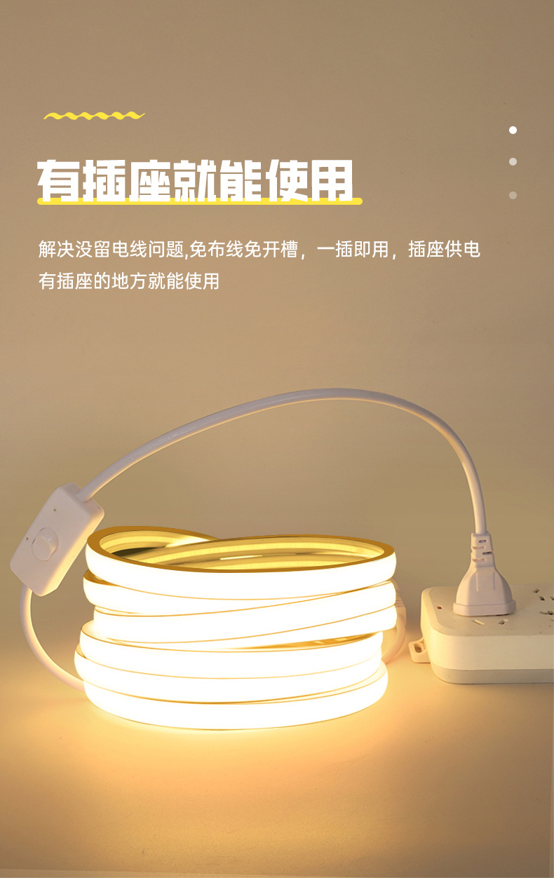 • 【 0.5m 】COB 라이트 스트립-10cm 컷-220V + 1.2m 긴 스위치 케이블