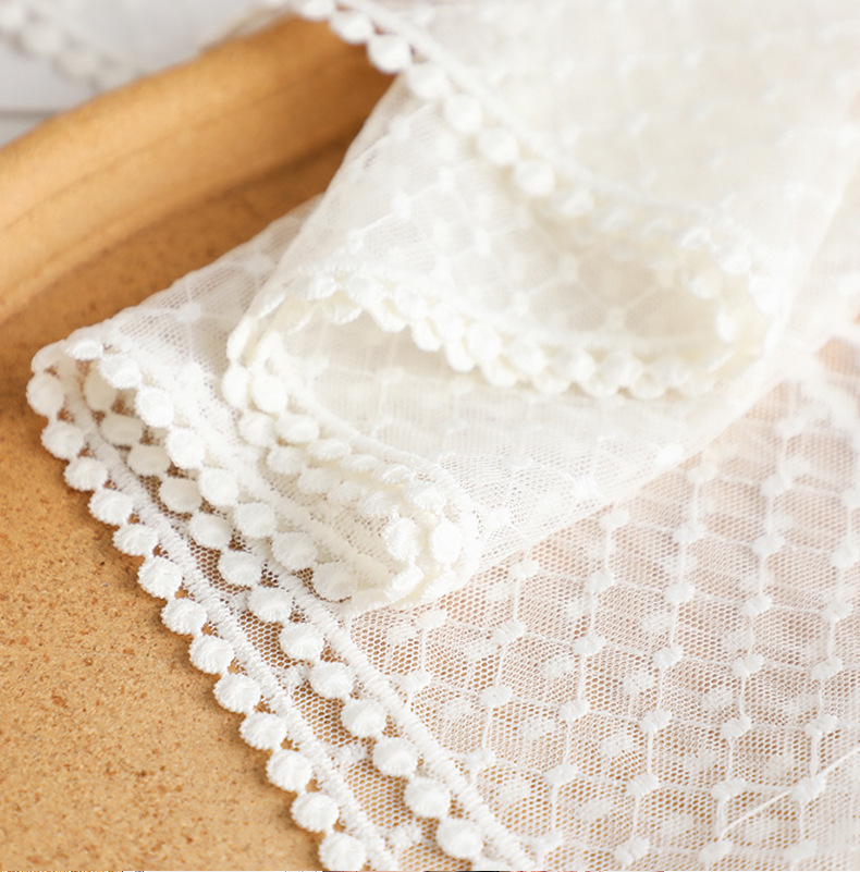 • 체크 무늬 레이스 대형 베벨 밀크 화이트
