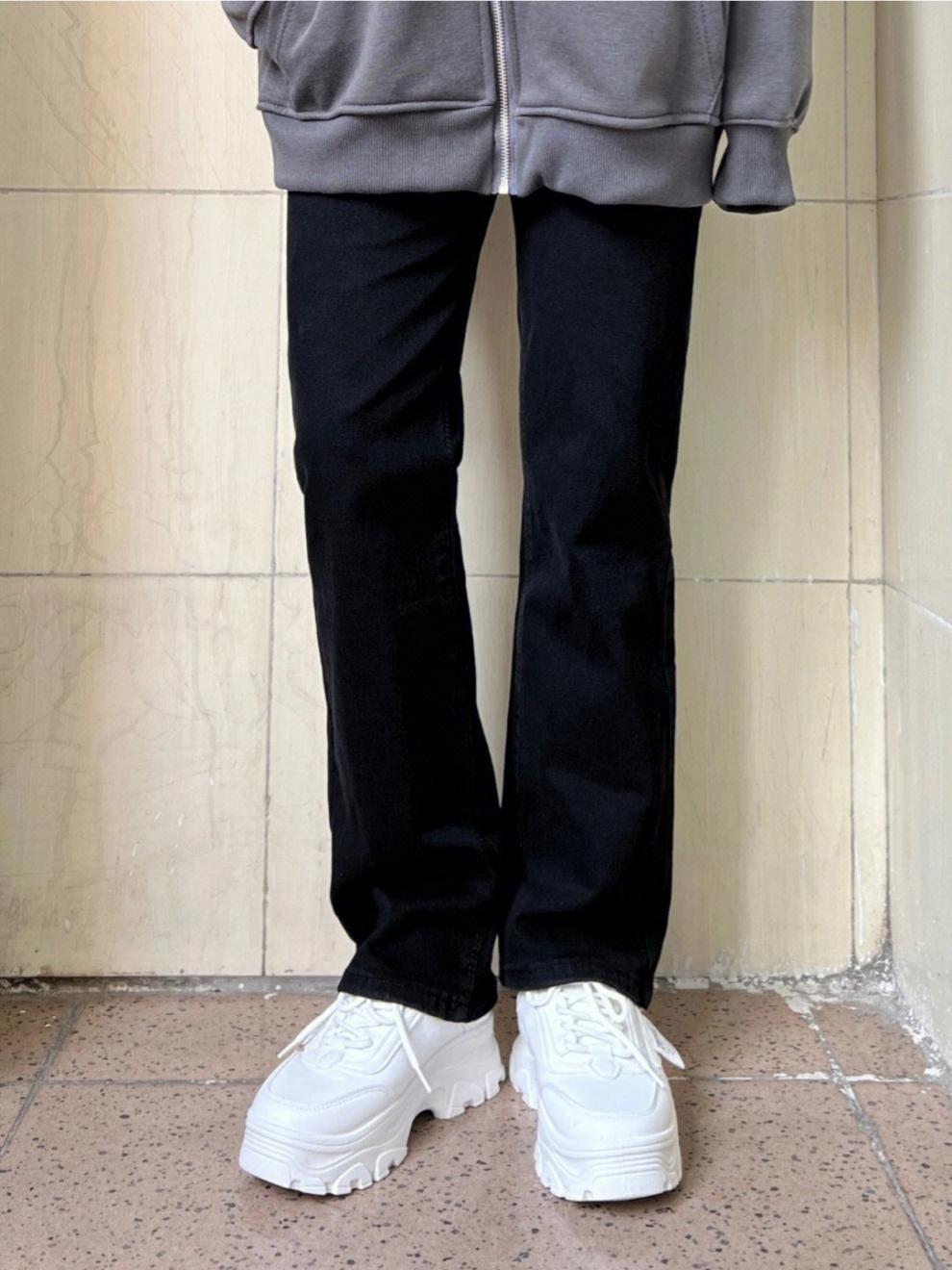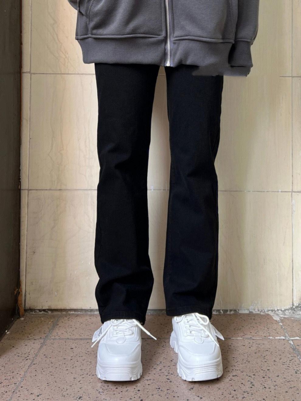 블랙 하이 허리 스트레이트 청바지 여성용 가을 플러스 사이즈 통통녀 하이 스트리트 올매치 고기 숨기기 캐주얼 파이프 바지