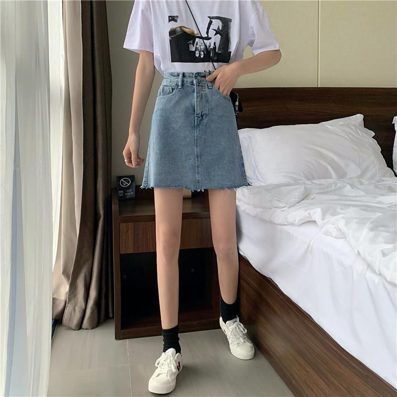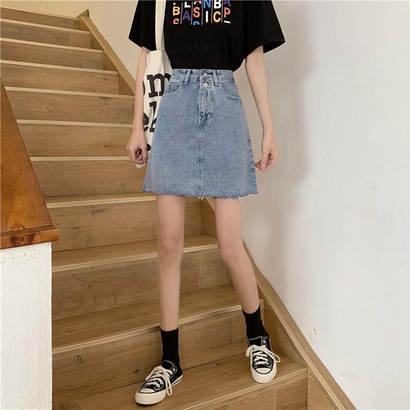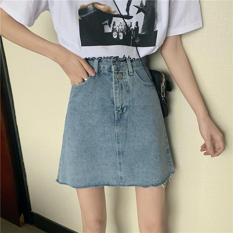 높은 허리 데님 스커트 여자 한국 스타일 여름 2025 새로운 스커트 힙합 스커트 슬리밍 A 라인 스커트 올 매치 스커트스토어 가기