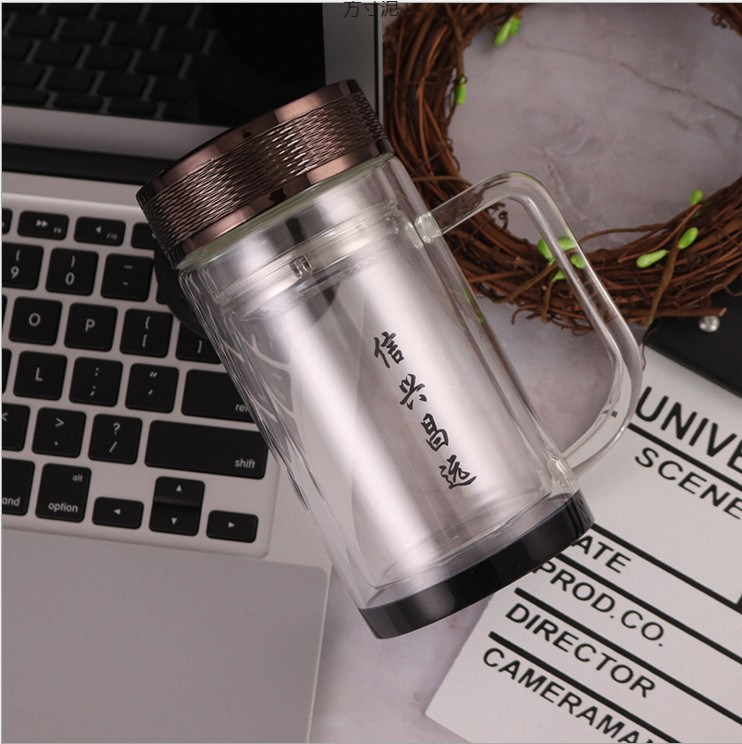손잡이가 있는 두꺼운 이중 유리컵, 남녀공용 휴대용 보온컵, 대용량 차컵, 공장 직판 도매스토어 가기
