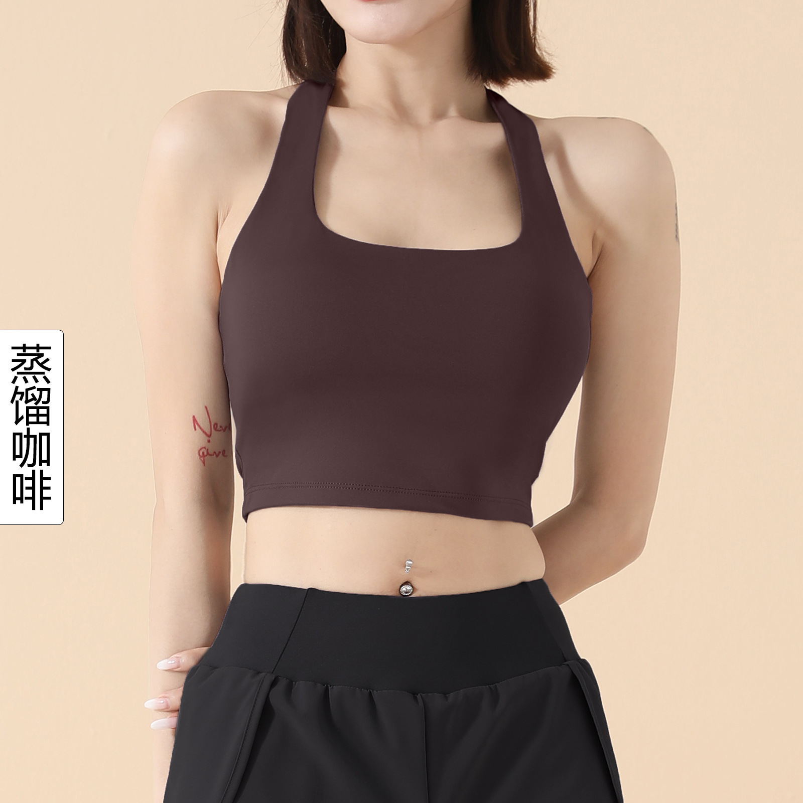 목에 걸려있는 큰 가슴 아름다운 등 스포츠 속옷 여성 달리기 빠른 건조 충격 수집 피트니스 브래지어 외부 요가 조끼 착용스토어 가기