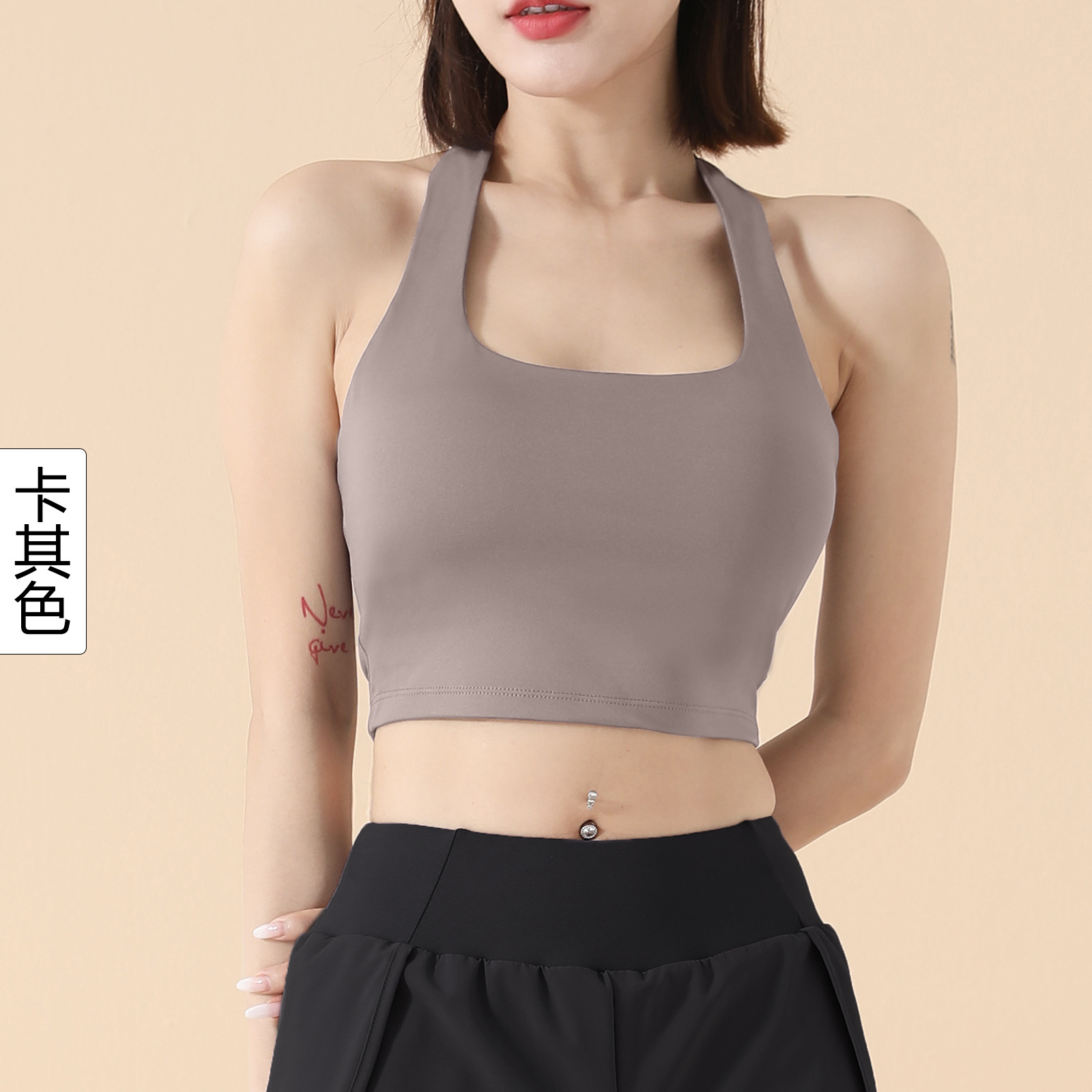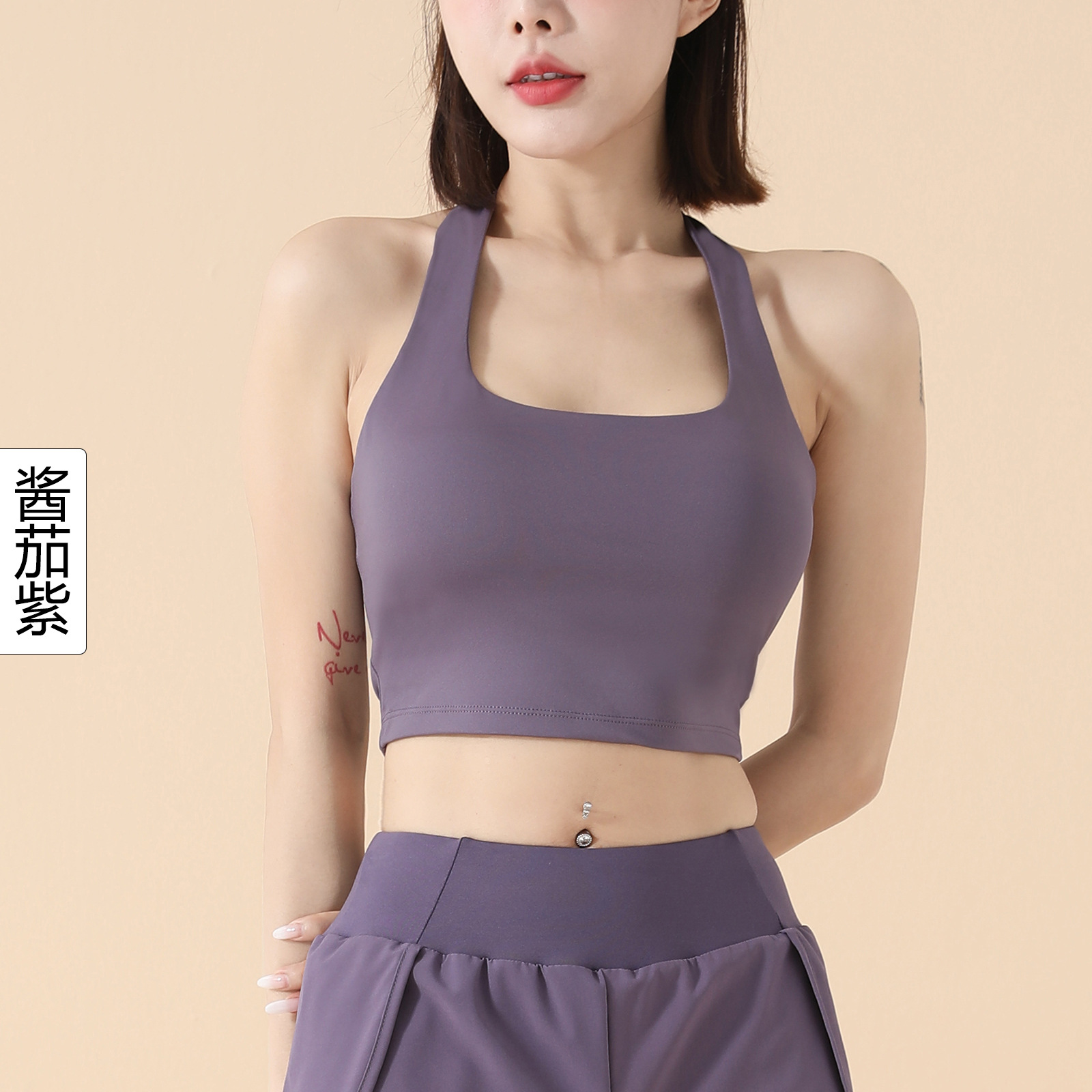 목에 걸려있는 큰 가슴 아름다운 등 스포츠 속옷 여성 달리기 빠른 건조 충격 수집 피트니스 브래지어 외부 요가 조끼 착용