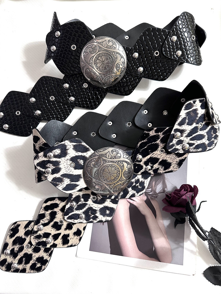 • 표범 무늬 스팟 쿼드 실버 버클 벨트