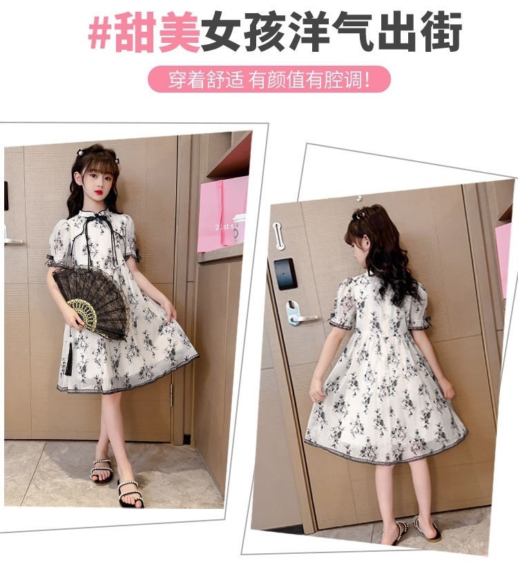 소녀의 꽃 청삼 원피스 여름 새로운 어린이 서양식 여름 원피스 소녀 반팔 쉬폰 공주 원피스
