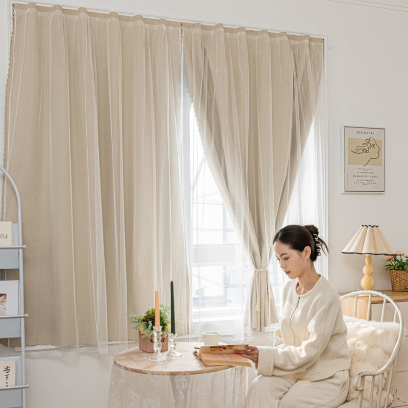 • 몽환적인 이중 커튼 - 100% 완전 암막 - 베이지