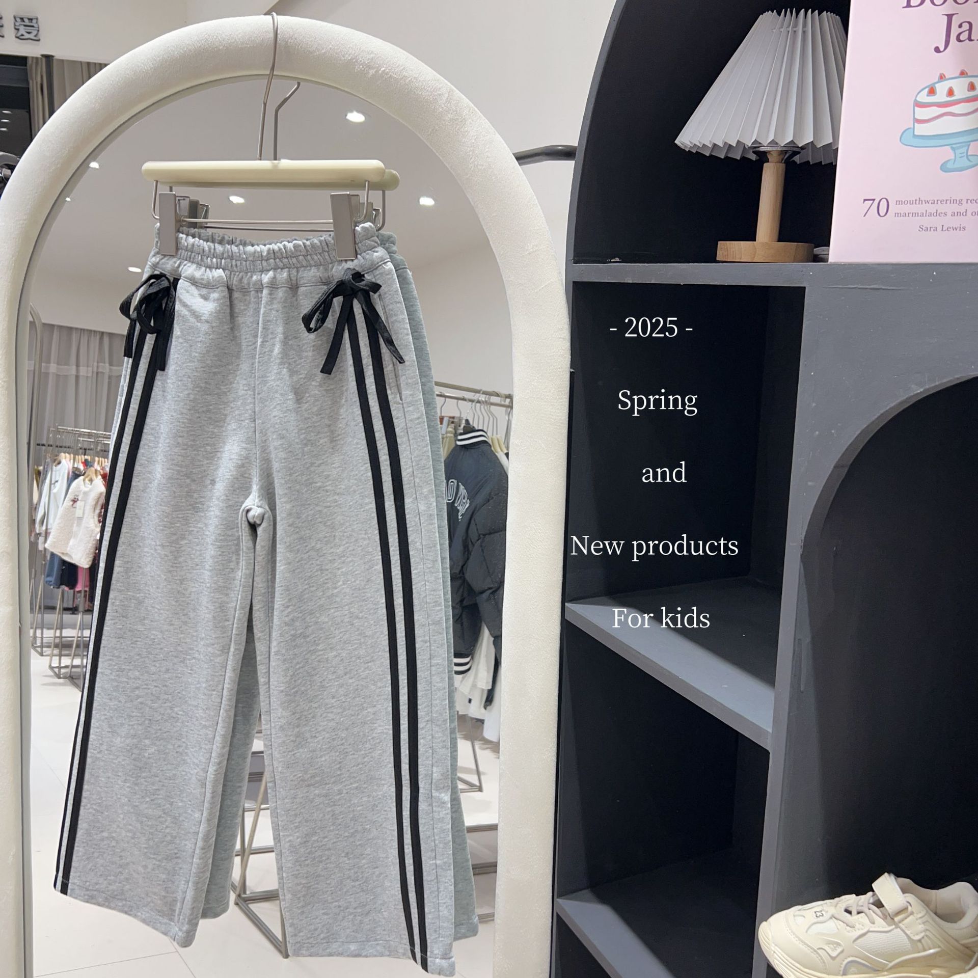 아동 바지 2025 여아 봄, 가을 신제품 3055 나비 넥타이 스트레이트 스웨트 팬츠 중대형 아동 한국 아동복스토어 가기