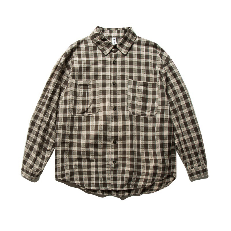봄 2025 새로운 일본 복고풍 격자 무늬 긴팔 셔츠 중립 스타일 남성용 올 매치 격자 무늬 셔츠