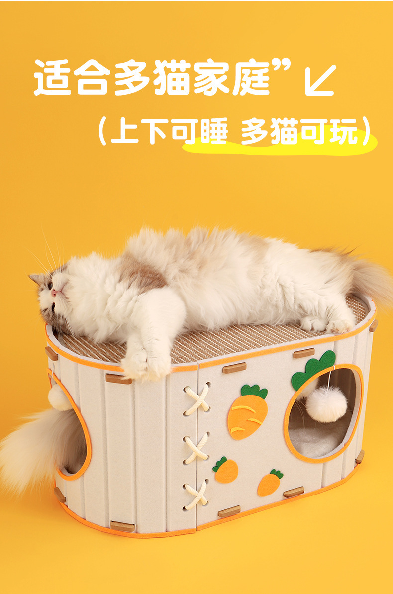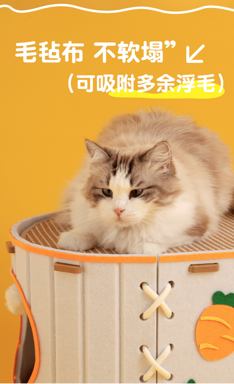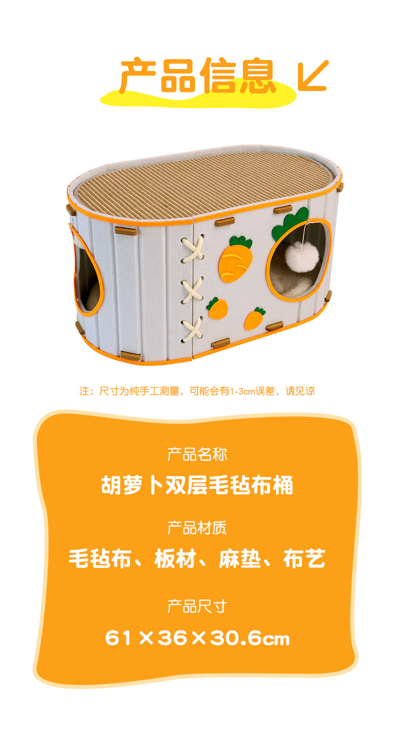 당근 더블 레이어 펠트 천 버킷 고양이 둥지 고양이 스크래치 보드 통합 고양이 장난감 드릴 고양이 터널 사계절 유니버설 고양이 하우스