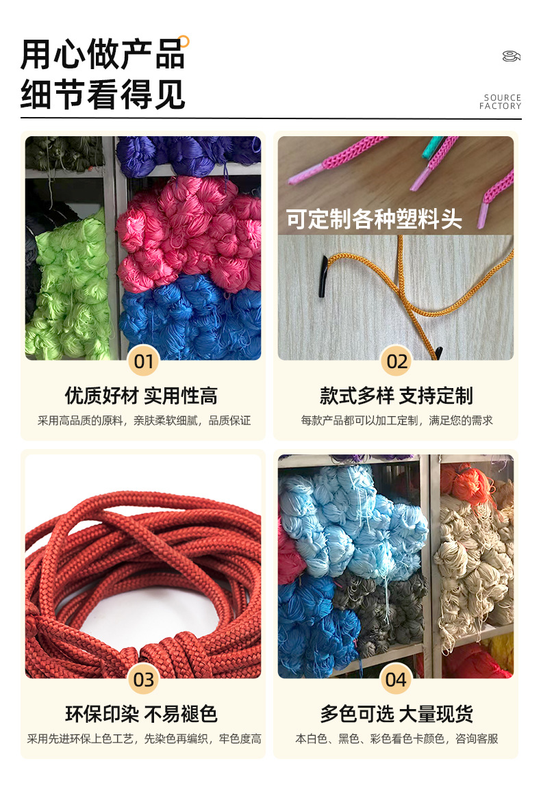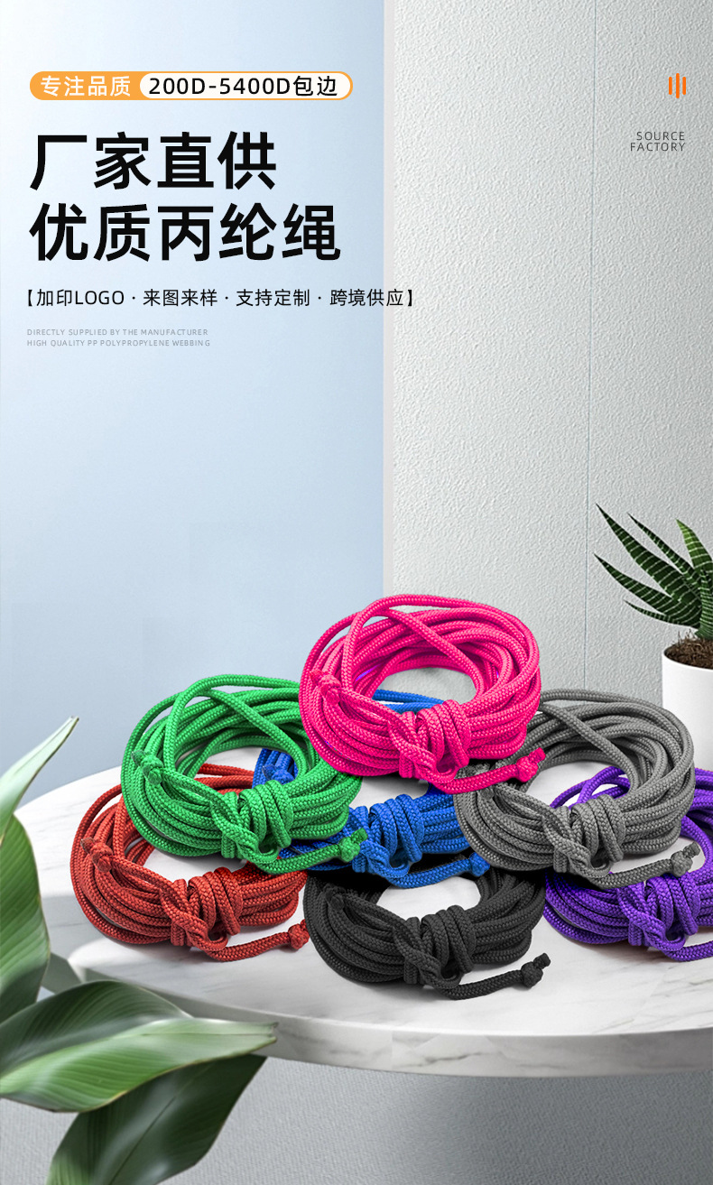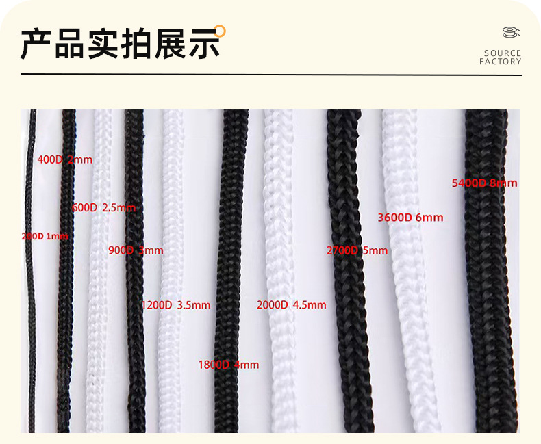 제조업체의 흑백 컬러 PP 폴리프로필렌 로프, 4바늘 중공 크로셰 끈, 휴대용 로프, 나일론 로프, 절단 가능스토어 가기