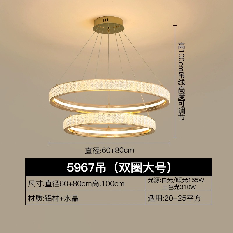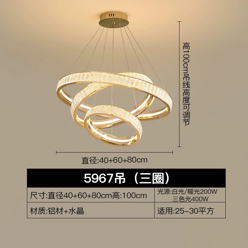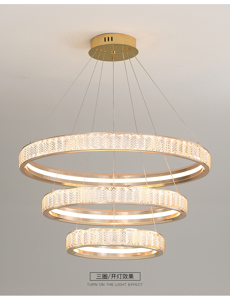라이트 럭셔리 크리스탈 샹들리에 거실 램프 2025 새로운 링 다이닝 룸 침실 대기 간단한 창조적 인 스마트 램프