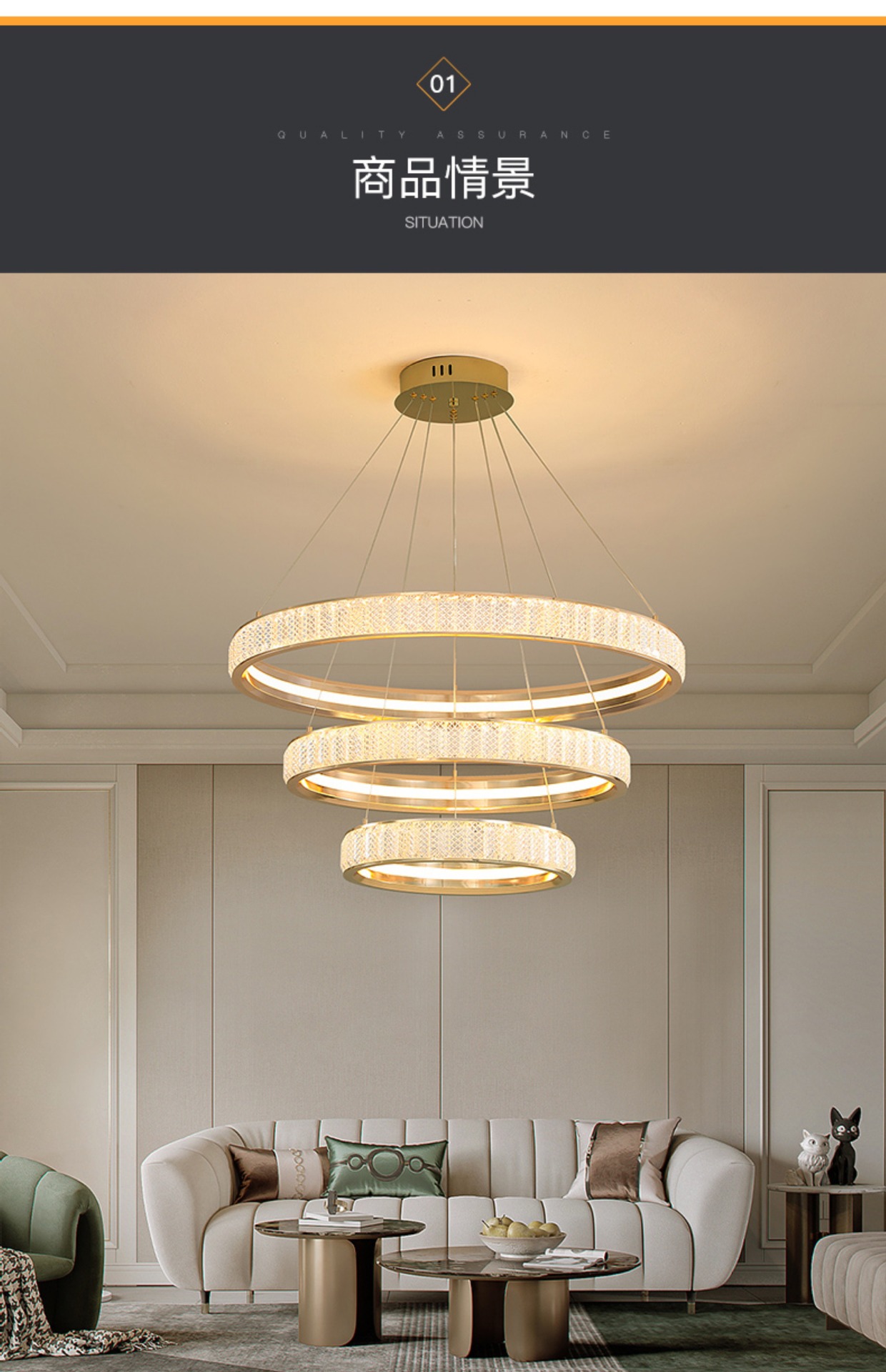 라이트 럭셔리 크리스탈 샹들리에 거실 램프 2025 새로운 링 다이닝 룸 침실 대기 간단한 창조적 인 스마트 램프스토어 가기
