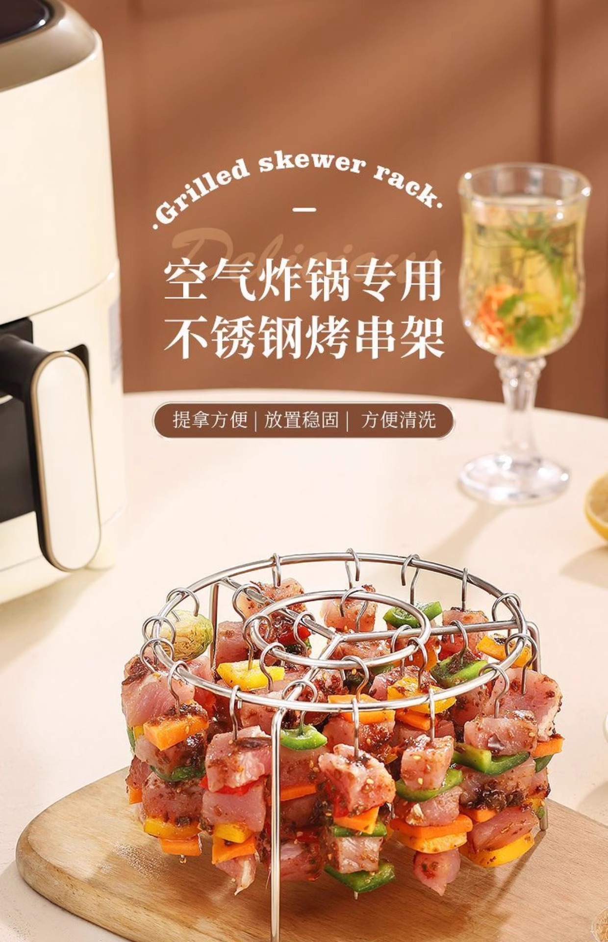 에어 프라이어 그릴 오븐 액세서리 스테인레스 스틸 수직 꼬치 바베큐 바베큐 주방 가구