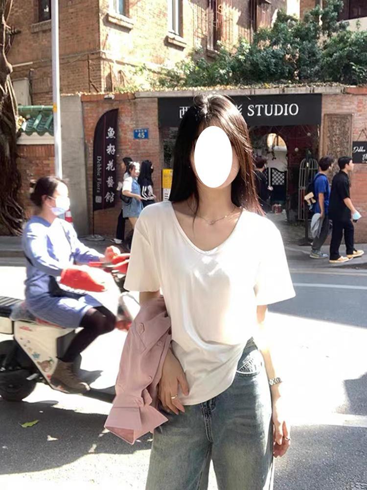 여름 새로운 반소매 느슨한 슬리밍 솔리드 컬러 U 칼라 티셔츠 여성용 얇은 반소매 내베이스 캐주얼 올 매치 탑스토어 가기