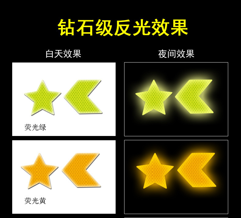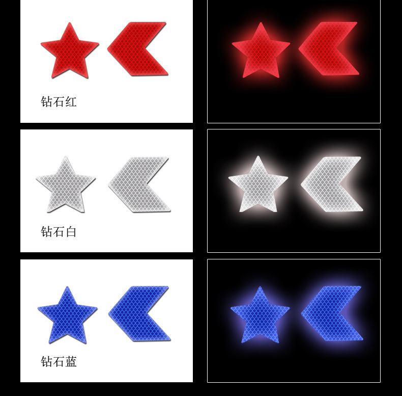 자동차 후면 반사 충돌 방지 스티커 오토바이 헬멧 야간 충돌 방지 스티커 5 점 별 화살표 다이아몬드 반사 스티커스토어 가기