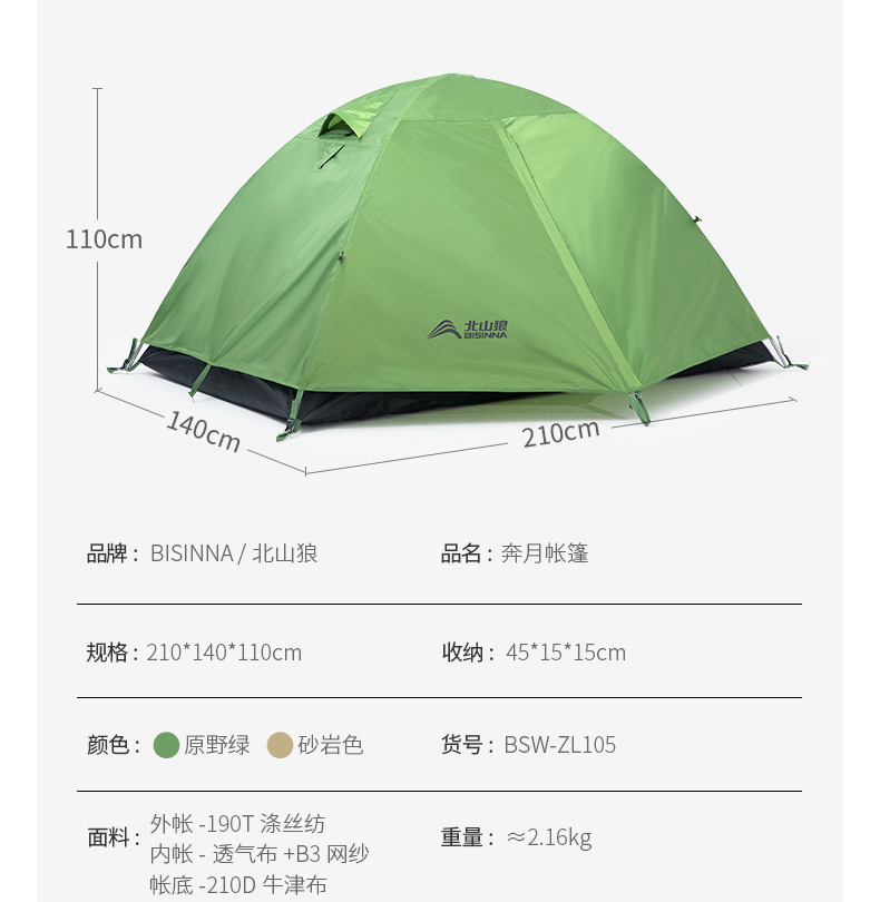 Beishan Wolf Tent 야외 전문 하이킹 및 등산 캠핑 방풍 및 방진 캠핑 더블 접이식 휴대용