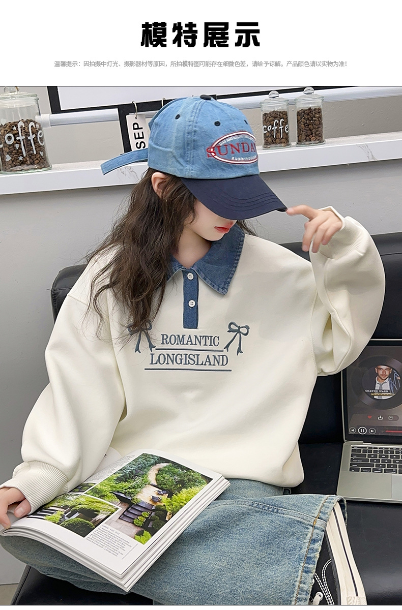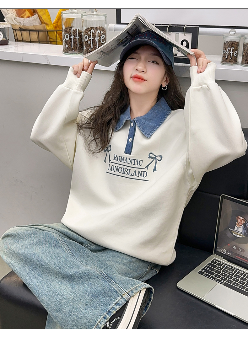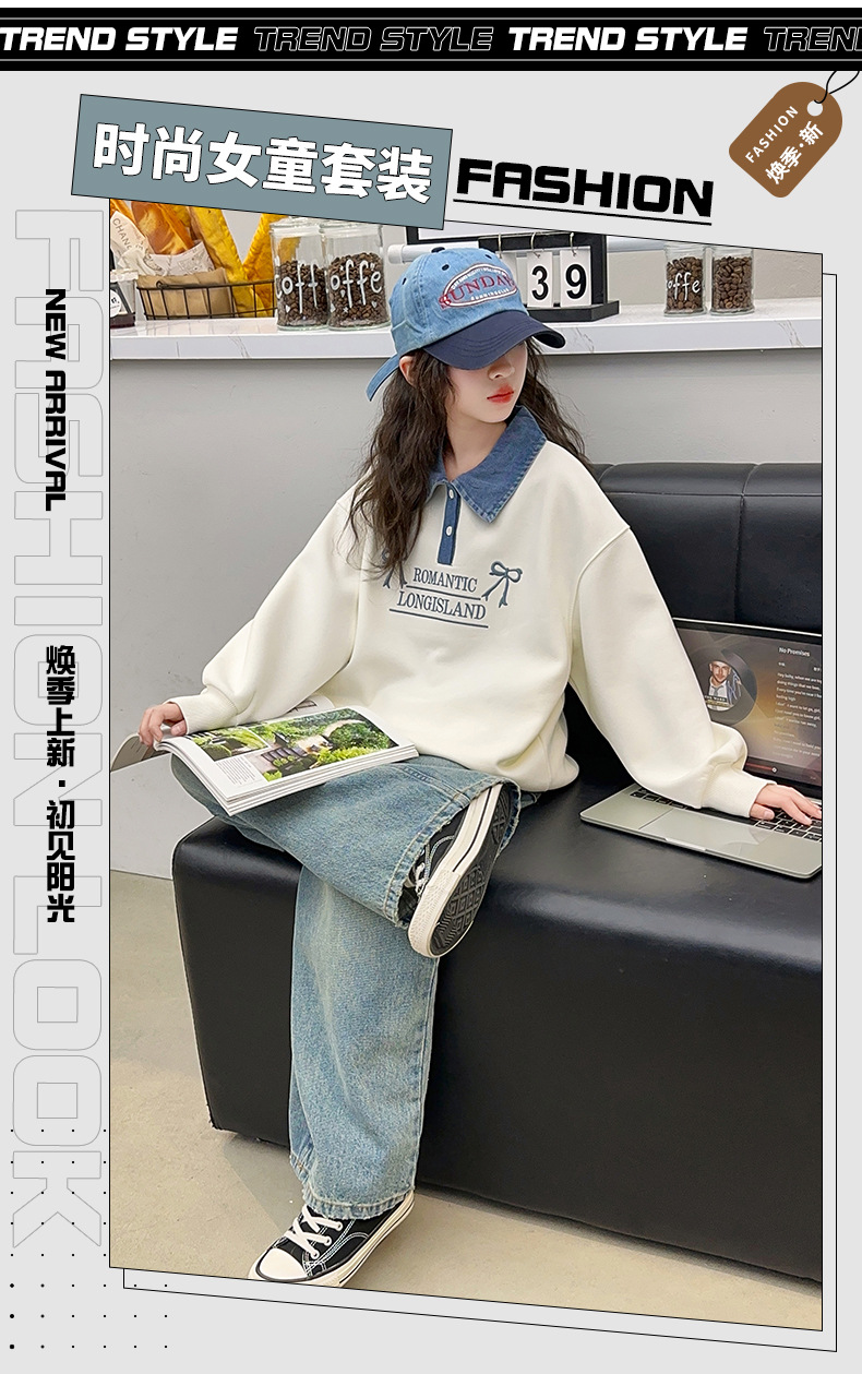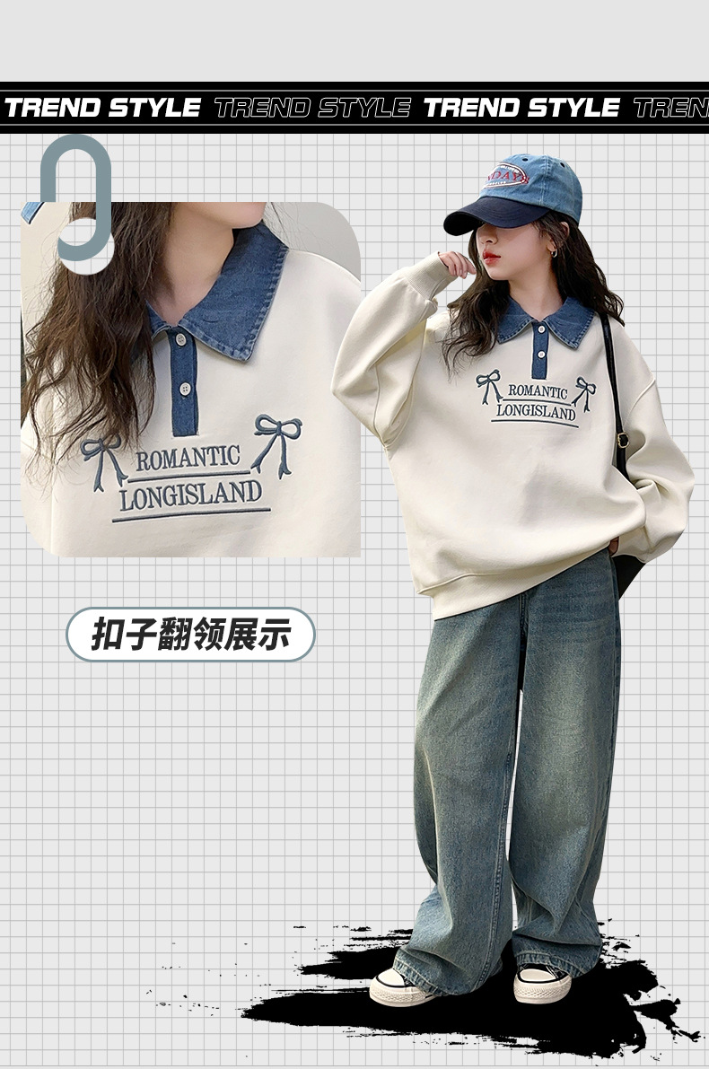 여아 자수 레터링 스웨트셔츠 세트 2025 봄 여아 루즈핏 데님 폴로 칼라 상의 봄 신상스토어 가기