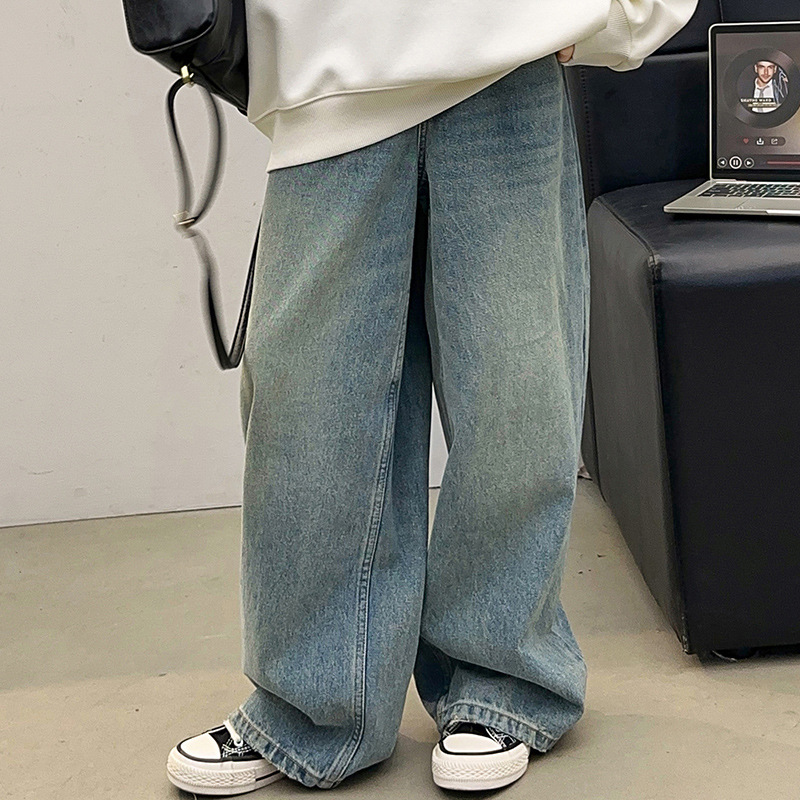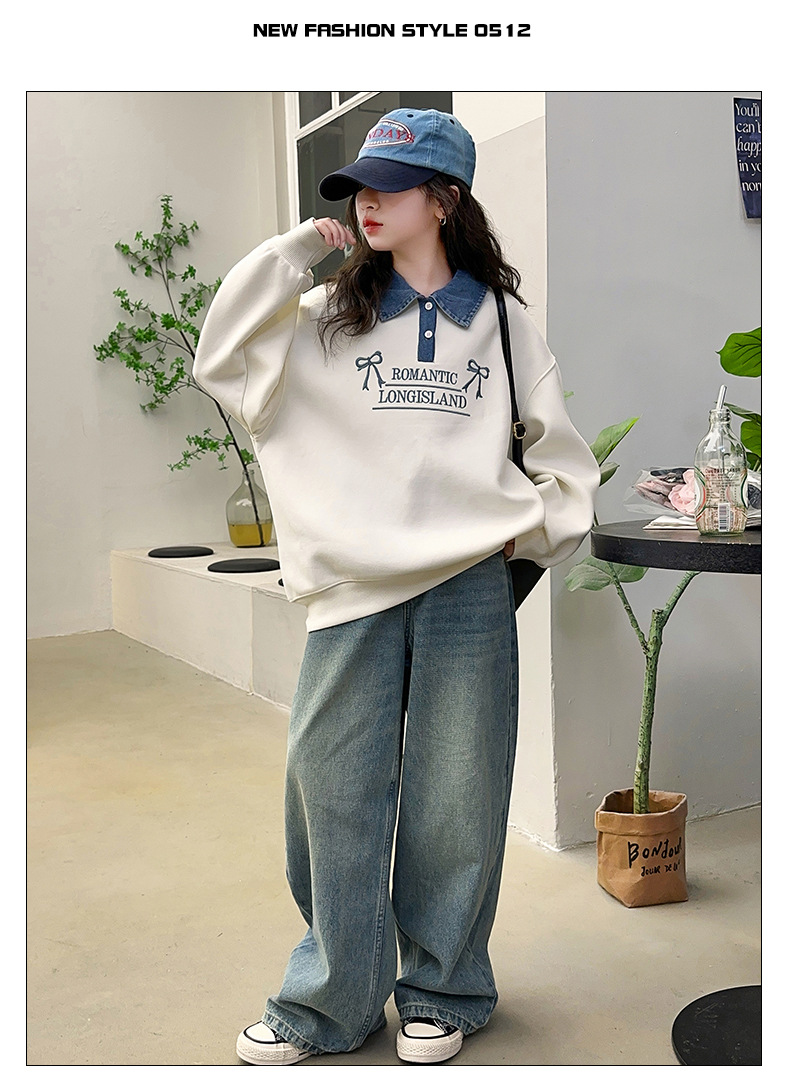 • 라지 칼라 스웨트셔츠 + 데님 와이드 팬츠 [슈트]