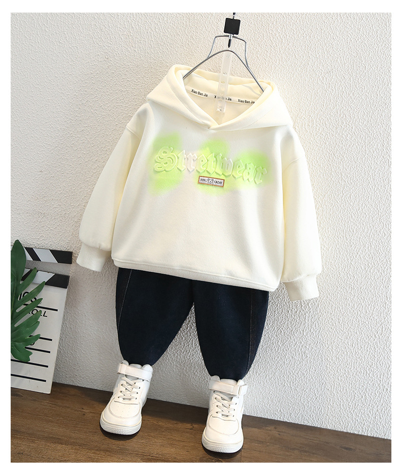 소년 편지 스웨터 봄 2025 새로운 어린이 세련 된 올매치 느슨한 후디 아기 유행 최고 유행스토어 가기