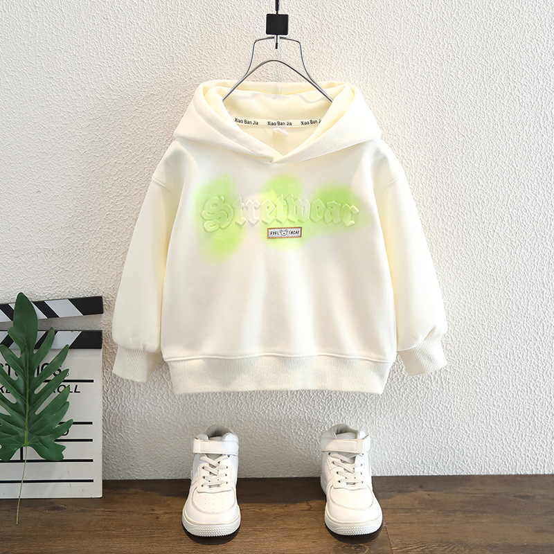 소년 편지 스웨터 봄 2025 새로운 어린이 세련 된 올매치 느슨한 후디 아기 유행 최고 유행