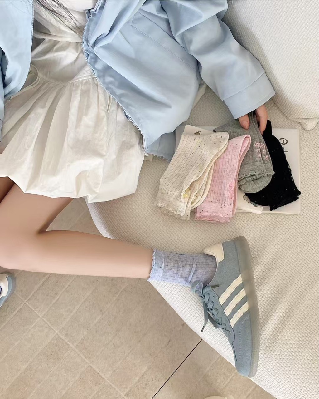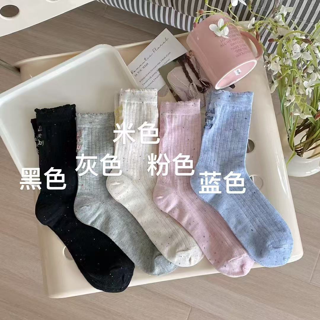 秋冬新品songmu韩国ins灰色丝绒蝴蝶结雪花百搭潮袜棉无骨中筒袜 RMB:4.60
