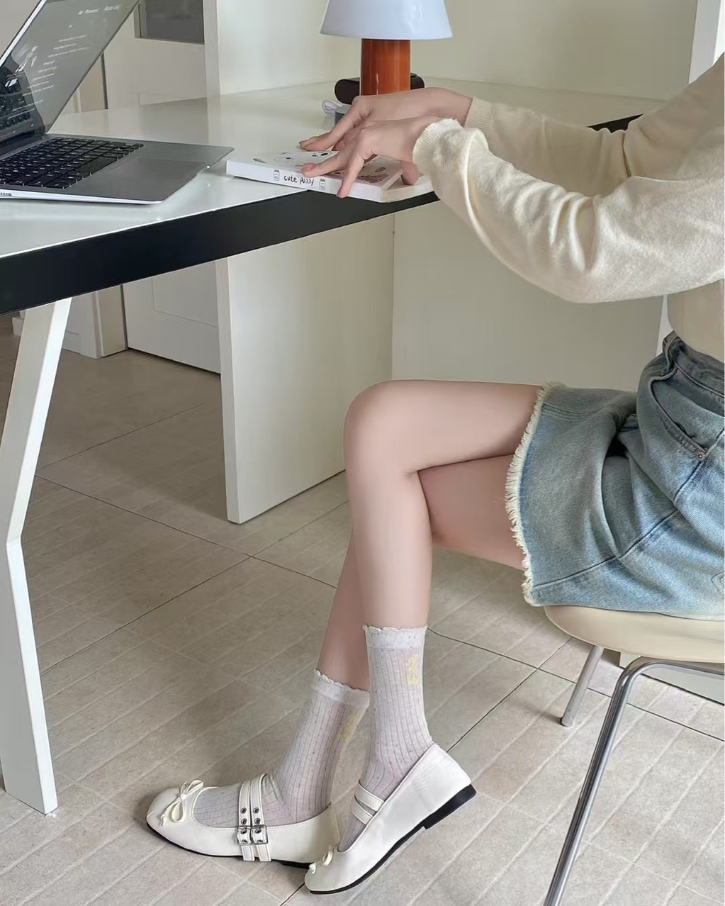 봄과 여름 양말 여성의 중간 배럴 얇은 핀 트렌디 한 한국 간단한 뒤꿈치 편지 더미 양말 회색 레이스 스타킹