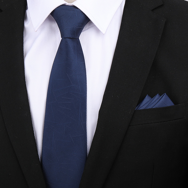 • 8cm 네이비 블루 글로시 핸드 프린팅 + 포켓 스퀘어