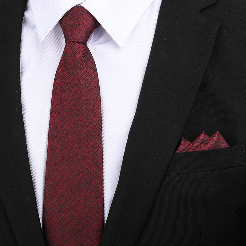 • 8cm 우아한 버건디 지퍼 + 포켓 스퀘어