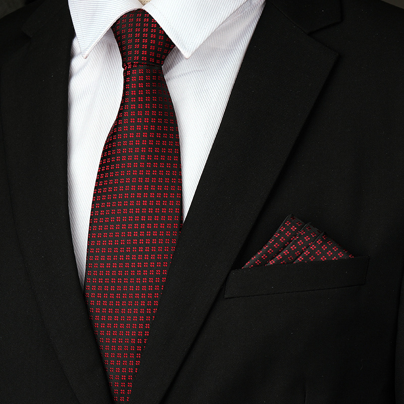 • 8cm 스타일 남성용 체크무늬 지퍼 + 포켓스퀘어