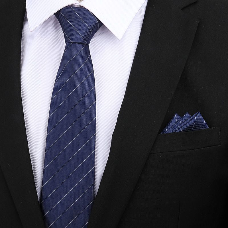 • 8cm 블루 다크 스트라이프 핸드메이드 + 포켓스퀘어