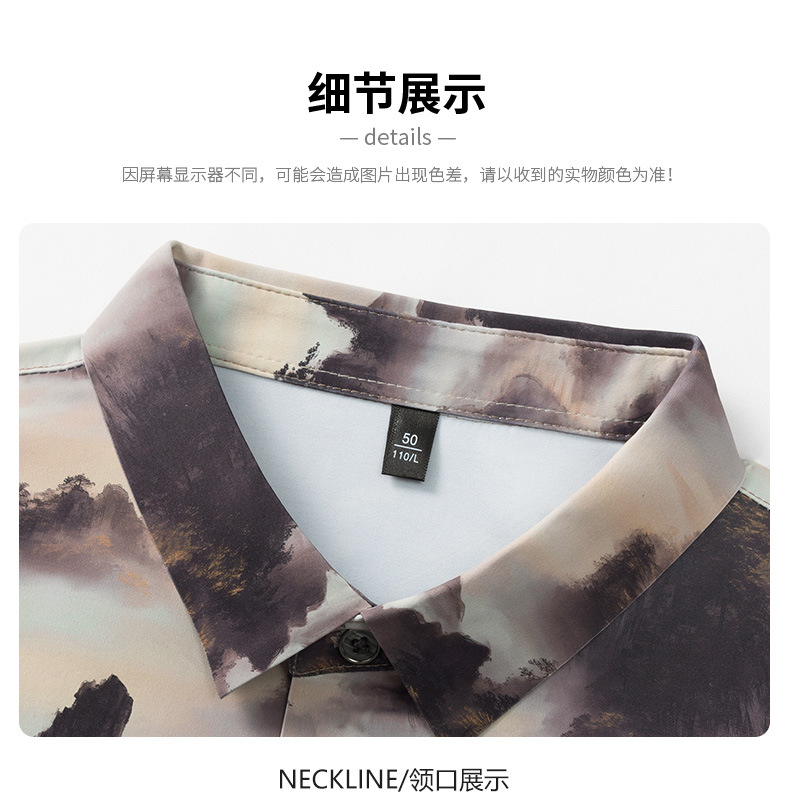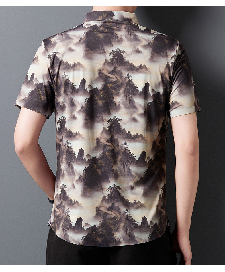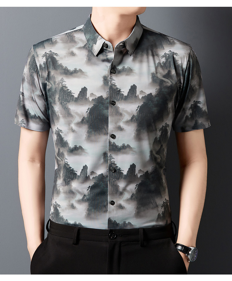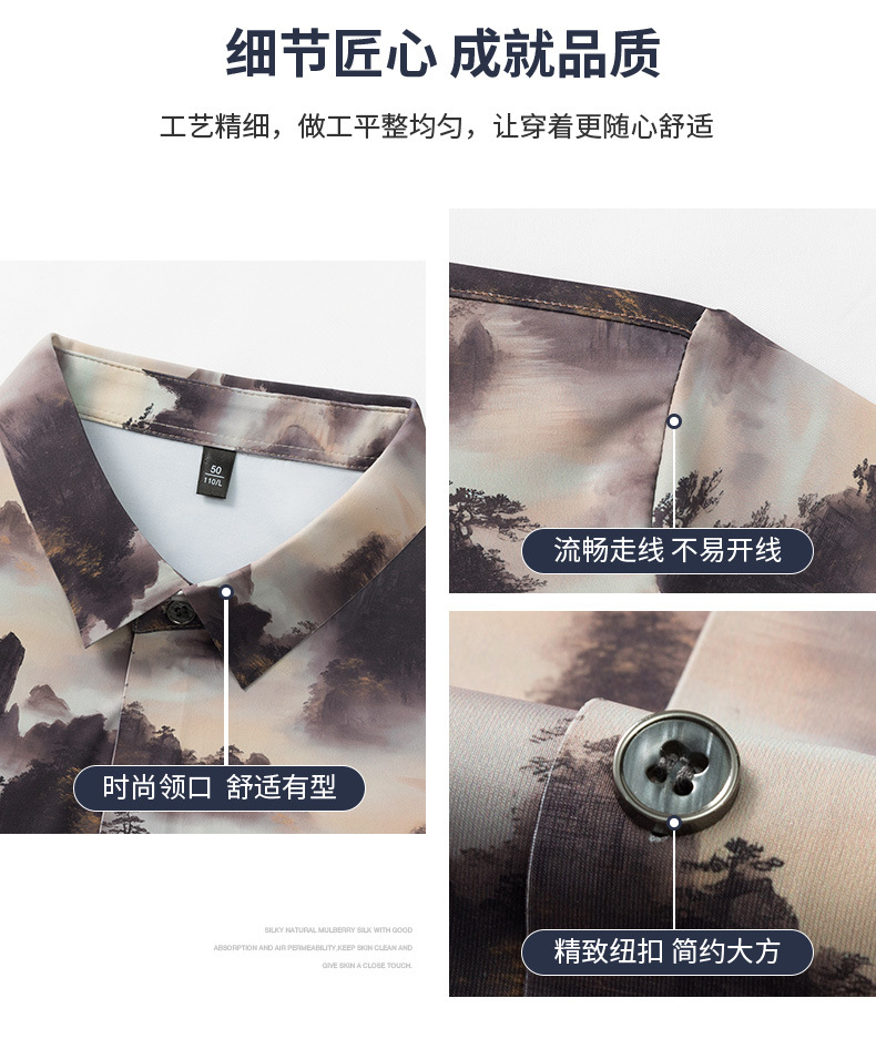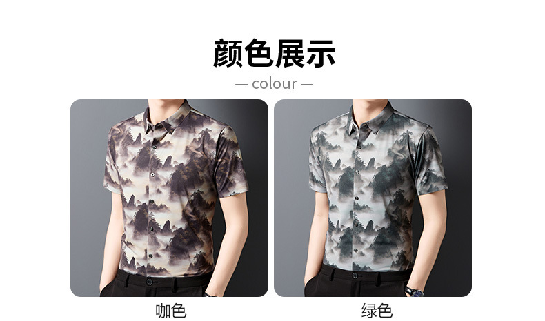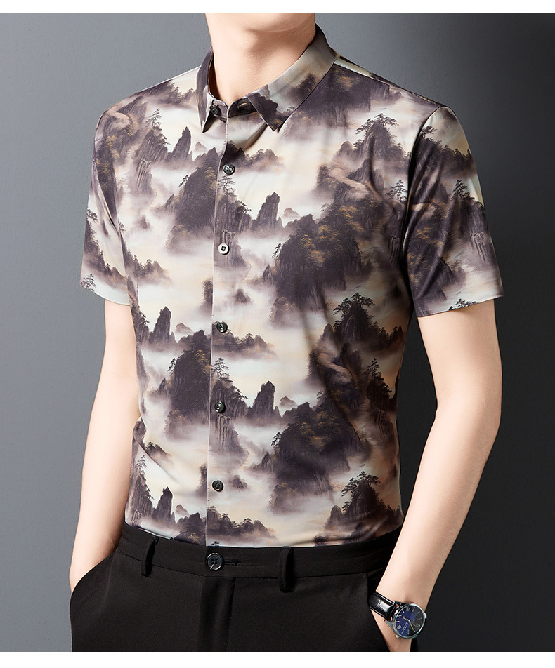 2025 여름 얼음 실크 남성 꽃 셔츠 높은 감각 새로운 중년 비즈니스 캐주얼 인쇄 남성 셔츠 도매스토어 가기