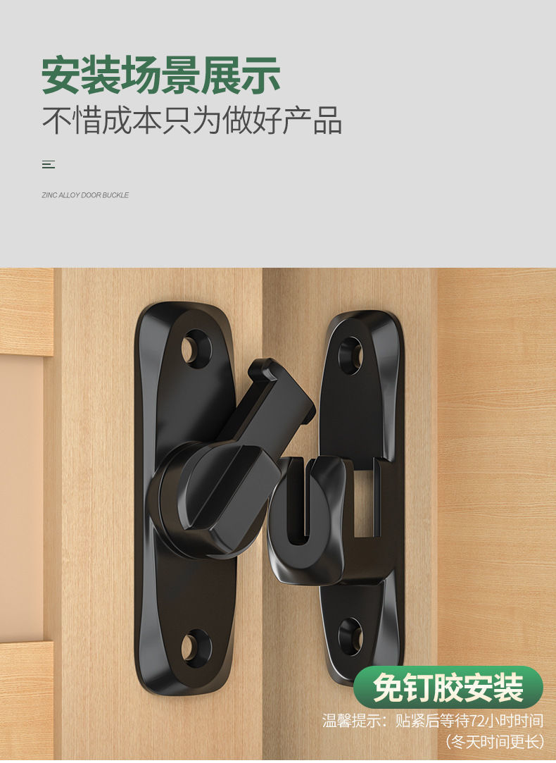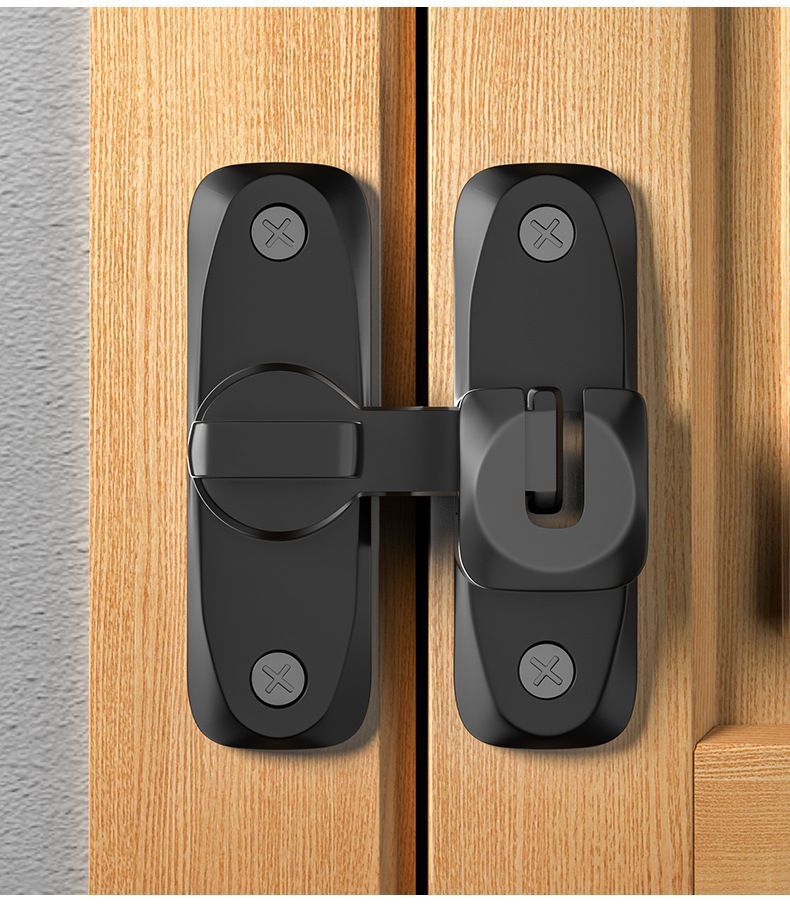 • 두꺼운 새 도어 버클 180도/90도 도어 프레임 범용 - 검정색(펀칭 없음/이중 사용을 위한 펀칭)