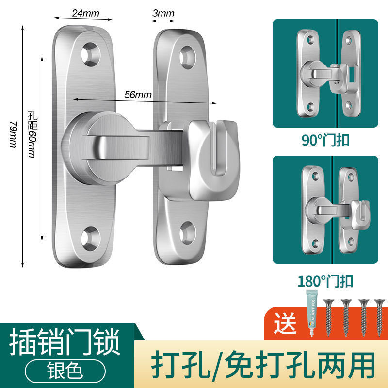 • 두꺼운 새 도어 버클 180도/90도 도어 프레임 범용 - 실버(펀칭 없음/펀칭 이중 사용)