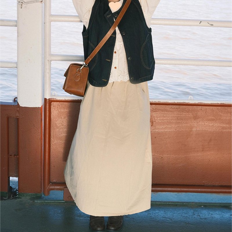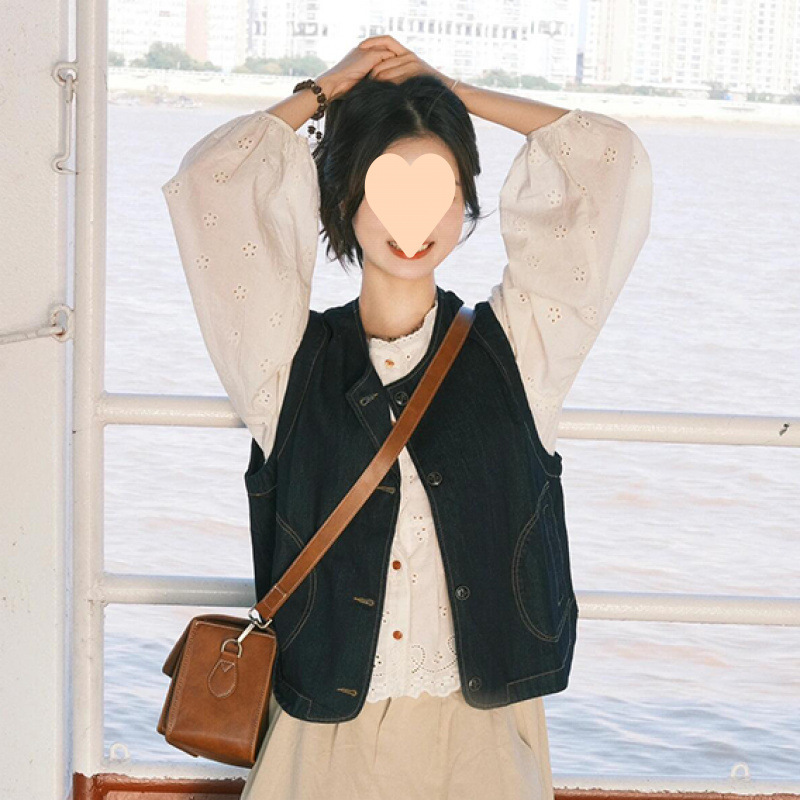이른 가을 여성의 일본 달콤하고 귀여운 데님 조끼 작은 조끼 셔츠 스커트 3 피스 세트 착용스토어 가기