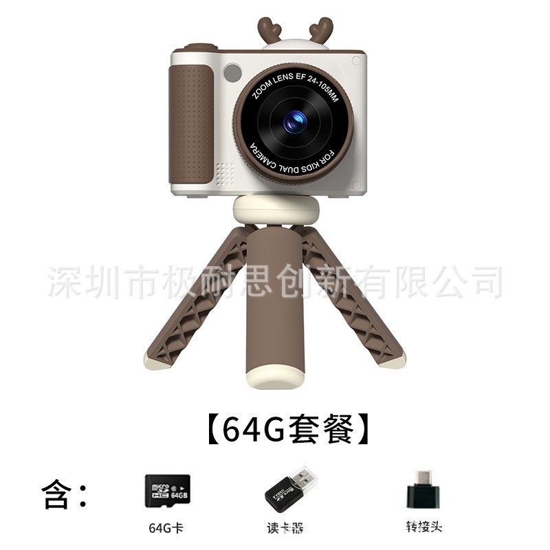 • S6 브라운 - 플립 스크린 + 회전 렌즈 + 삼각대 - 64G 메모리 카드 + 카드 리더기 + 어댑터
