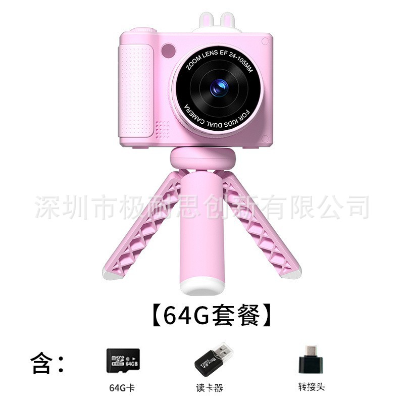 • S6 핑크 - 플립 스크린 + 회전 렌즈 + 삼각대 - 64G 메모리 카드 + 카드 리더기 + 어댑터