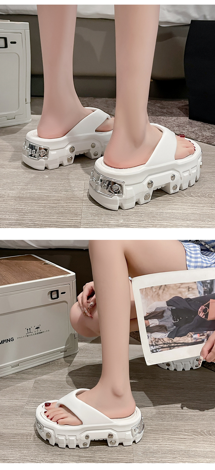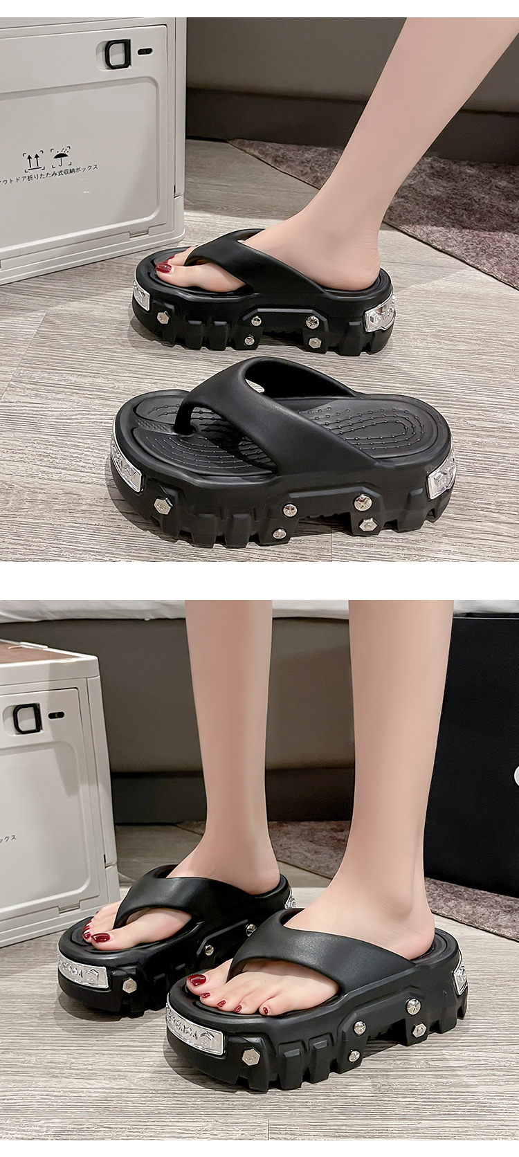 파리 패션 앵글 플립 플롭 남성 여름 아우터 두꺼운 바닥 에바 높이 증가 인터넷 레드 블랙 유럽과 미국 스타일 스타 팬스토어 가기